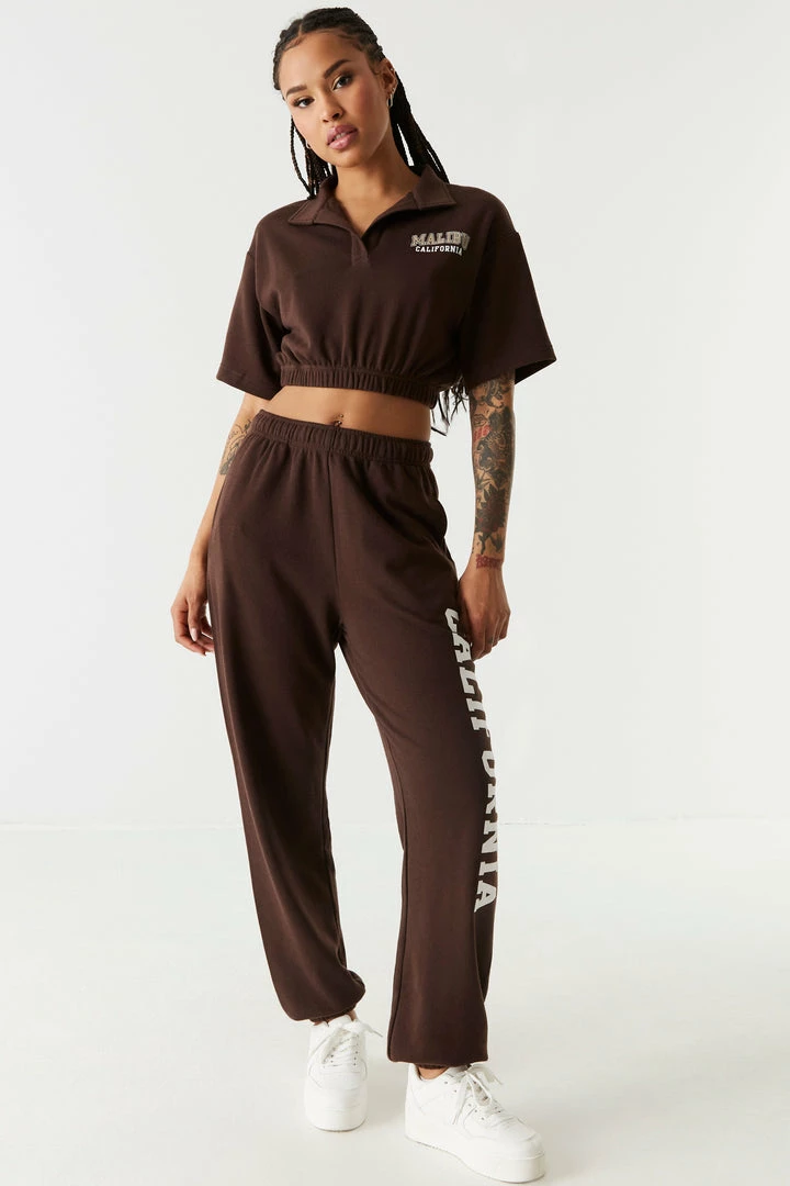 Whether hopping on a flight or into bed, these sweatpants have you covered with equal parts fashion and function. This jogger features an elasticized waistband, California leg graphic, two pockets, and an ultra soft material. Size Runs Small. Complete this set with Fleece California Graphic Embroidered Polo Top.