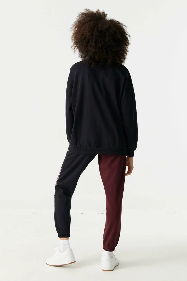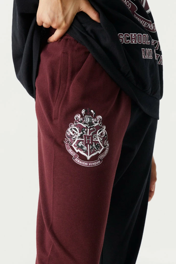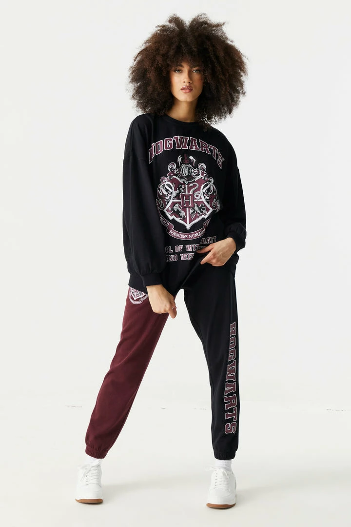 Congrats! You just received your acceptance letter to Hogwarts! Hop on your broom and hit the road in style with this magical jogger. This jogger features Hogwarts varsity graphics, two pockets, colour block print, self-tie drawstring waist and ribbed knit ankle cuffs. Finish the fit with the Hogwarts Graphic Varsity Fleece Boyfriend Sweatshirt. Size runs small.