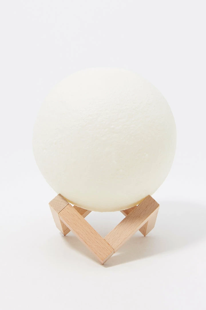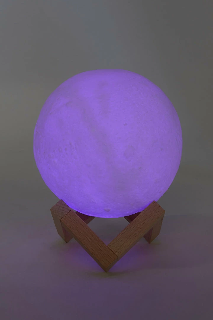 Make every night a bright one with this full moon light; the star of your bed time routine! This moon lamp features colour changing feature, wooden base and three AAA battery holder (batteries not included).