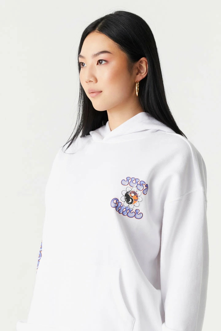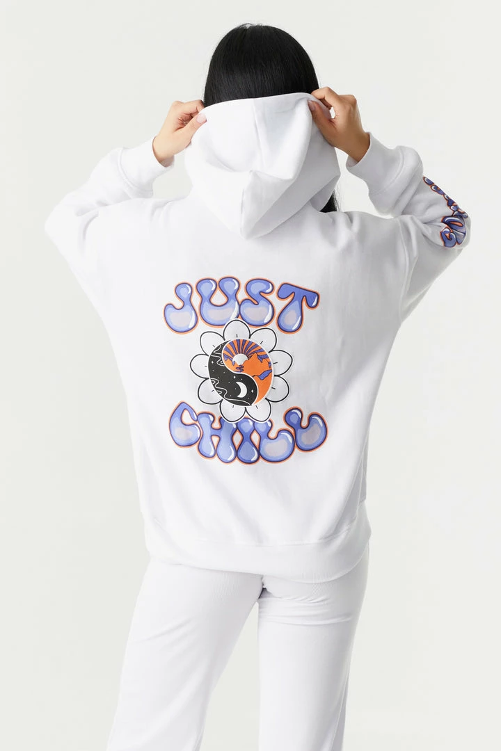 Chill out and relax knowing this hoodie has got your back. This hoodie features ribbed knit cuffs and hem, just chill front, back and arm graphics, popover fit and kangaroo front pocket. Size runs small.
