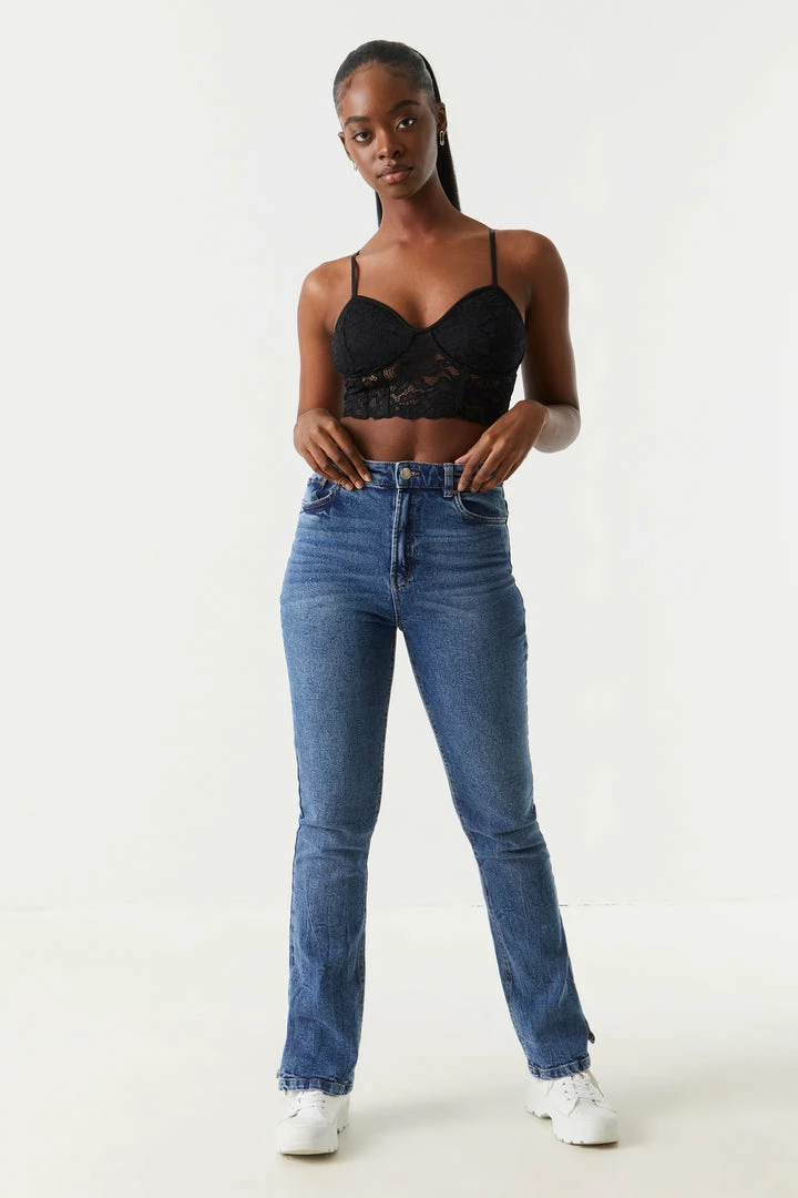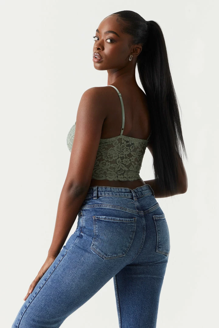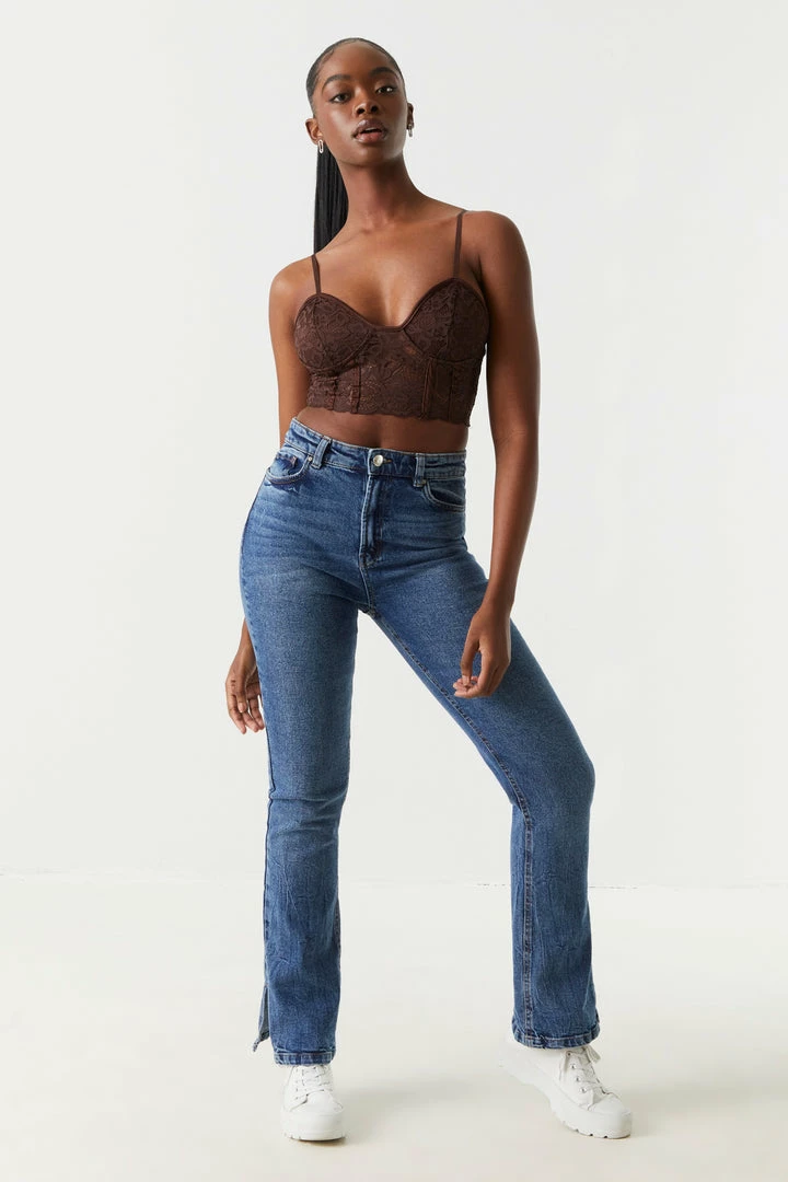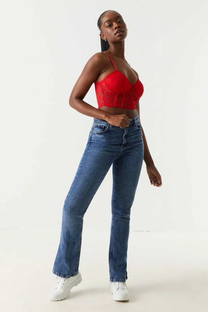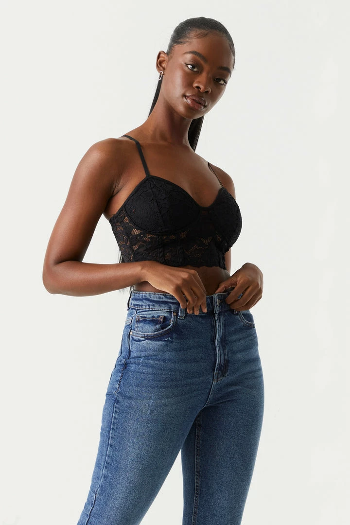 Grace the world with lacey dream! The sexy layer to your going out-fit. This top features sweetheart neckline, cropped fit, lace corset and adjustable spaghetti straps. NOTE: This pair of jeans runs larger than our regular fits. We recommend ordering one size down for the perfect fit.