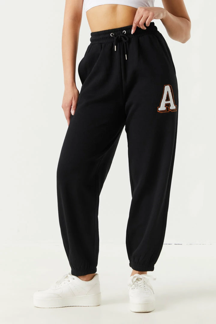 Congrats on finding your new best friend! This jogger is guaranteed to flatter from power-lifts to parties. This jogger features self-tie drawstring, high-rise waist, two pockets, cinched ankles and letter A leg graphic. Set me up with the Letter A Graphic Cropped Fleece Varsity Jacket. Size runs small.