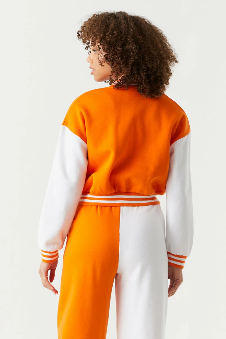 School may be out for the summer, but this varsity fit is in! Channel your main character vibes in this original outerwear. This jacket features contrast hem, button-up front, letter B chest graphic, colour block sleeves, varsity style, cropped fit and two pockets. Set me up with the Letter B Graphic Colour Block Fleece Jogger Pant. Size runs small.
