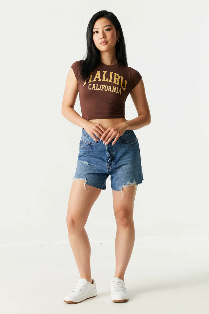 You know what they say about California girls? Unforgettable! This t-shirt features crew neck, short sleeves, cropped fit and Malibu graphic. Size runs small.