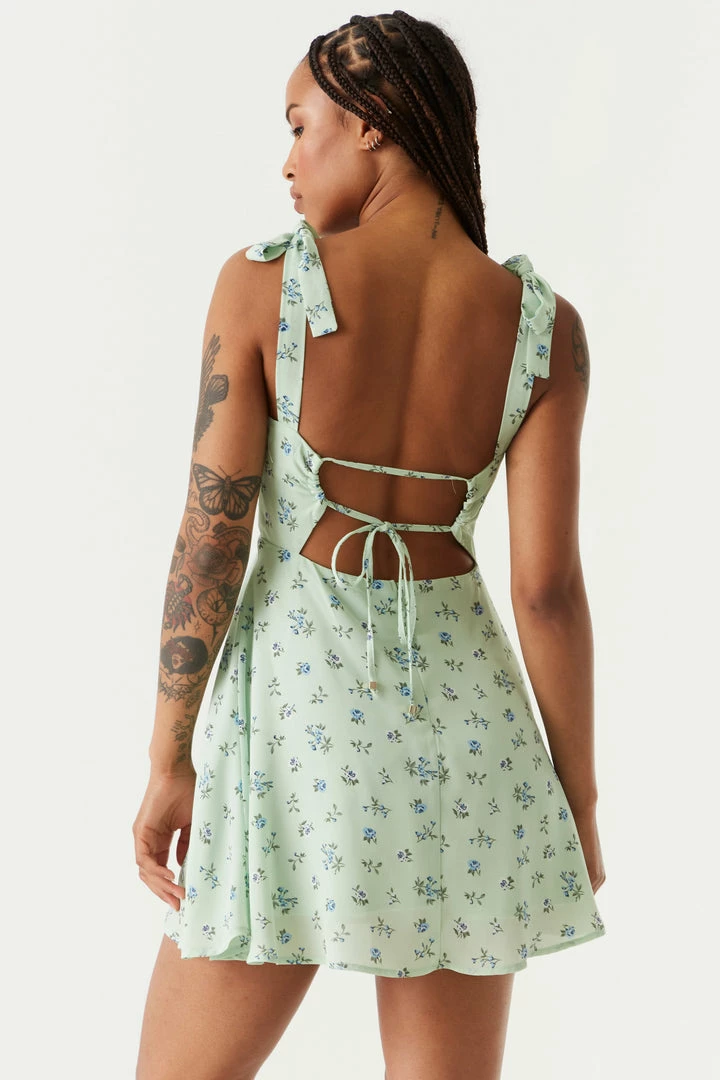 Summer days call for summer dresses! Freshly picked and ready for the sun. This dress features skater fit, all over floral print, self-tie shoulder straps and self-tie lace-up back. Size Runs Small.