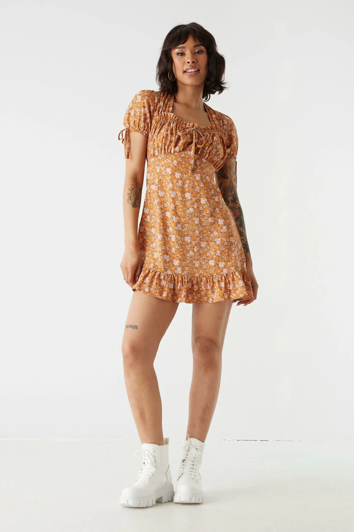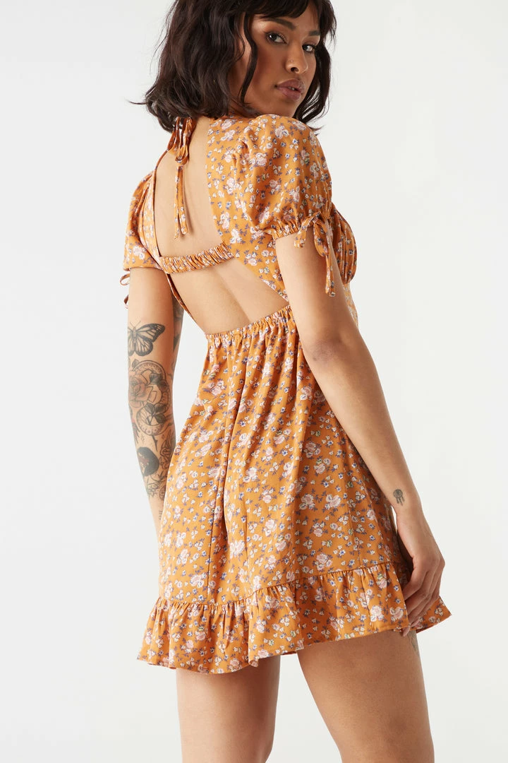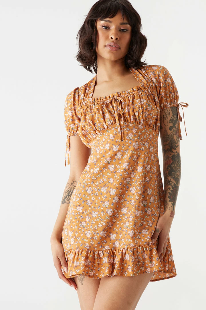 Embrace your farm girl “halter-ego”. In this flirty dress you are sure to be the talk of the barnyard. This dress features self-tie halter neckline, milkmaid design, ruffled hem and self-tie sleeves. Size Runs Small.