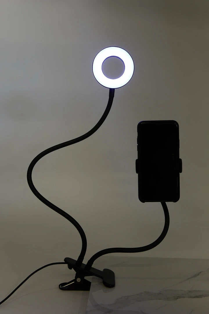 Selfie like a pro and make your followers jealous! This light features multiple colour patterns, portable and lightweight design, adjustable goose neck, 12 w bulb, phone holder, remote control and clip-on bottom.