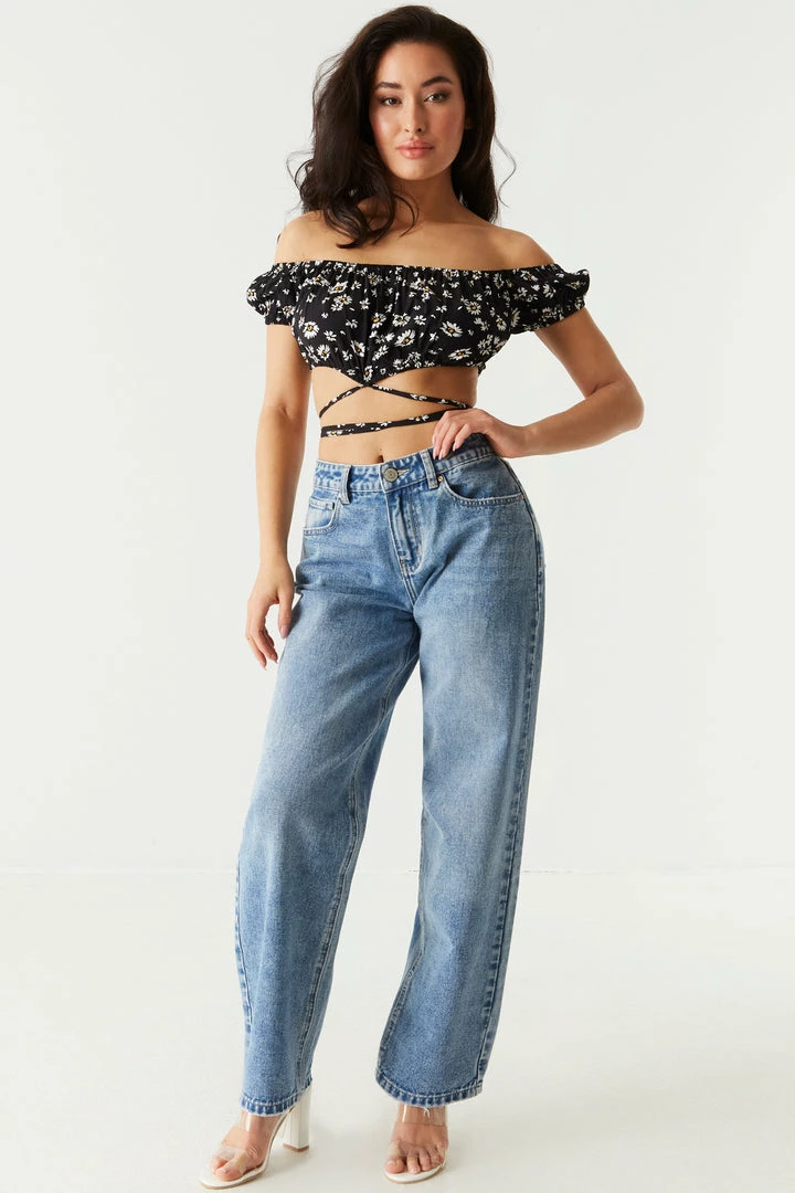 Forget the cold shoulder! This top is hot! Shimmy into something strapless and rock this modern twist on a beloved classic. This top features off the shoulder design, elastic non-slip neckline, all over floral print and a self-tie wrap waist. NOTE: This pair of jeans runs larger than our regular fits. We recommend ordering one size down for the perfect fit.