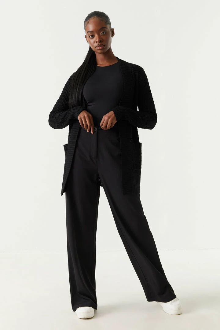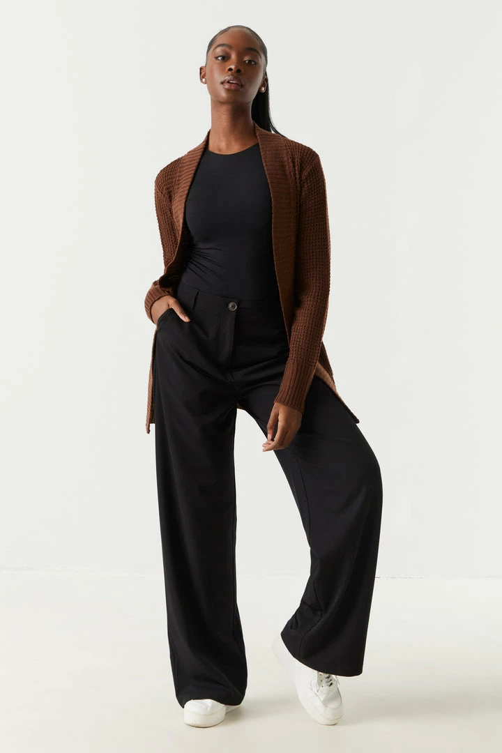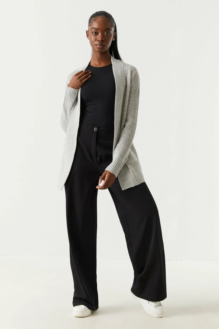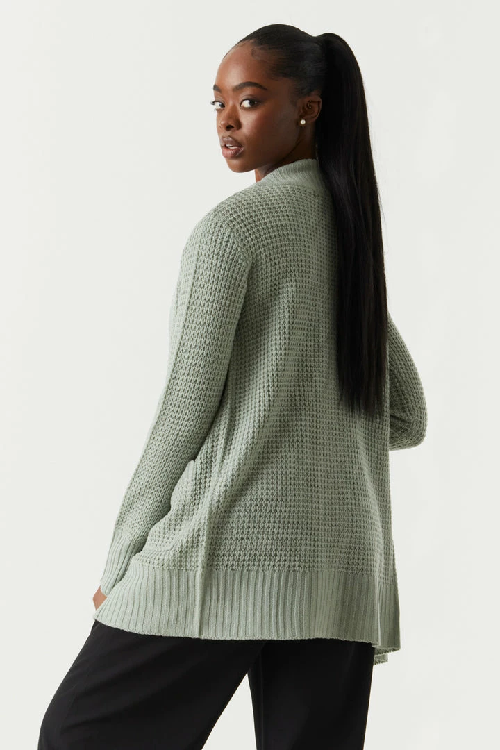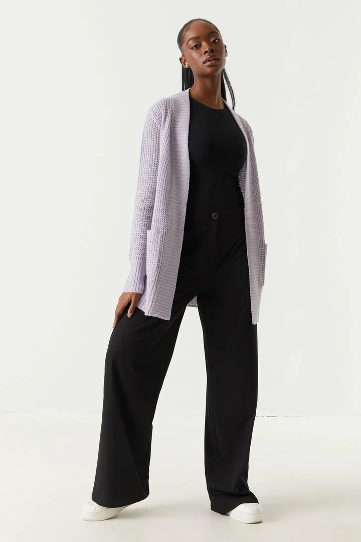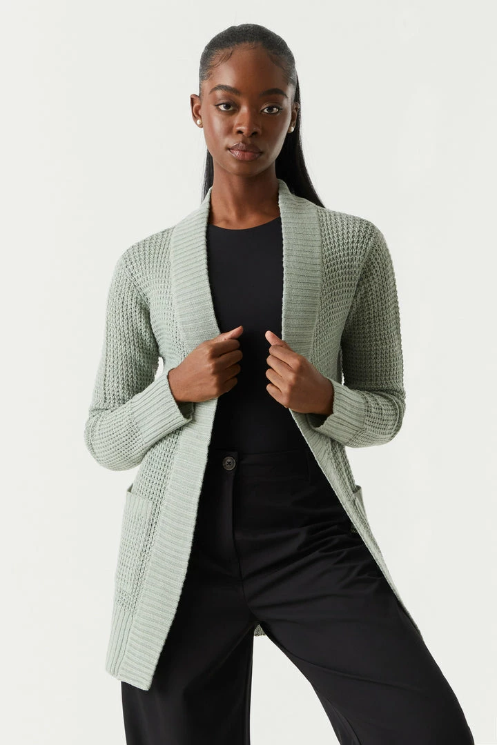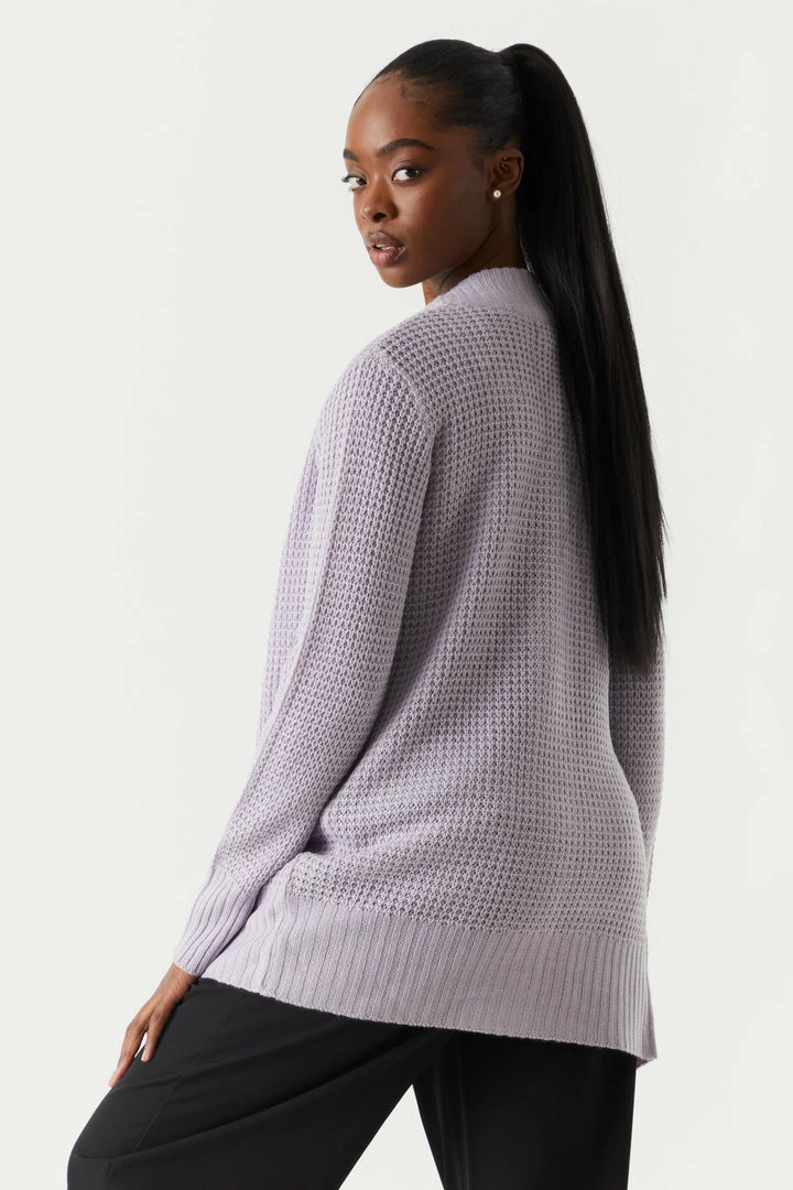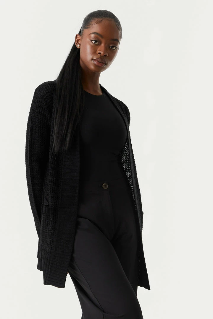 Breakfast is the most important meal of the day and today we are having waffles! This cardigan features open front, long sleeves, ribbed knit hem and two large pockets.