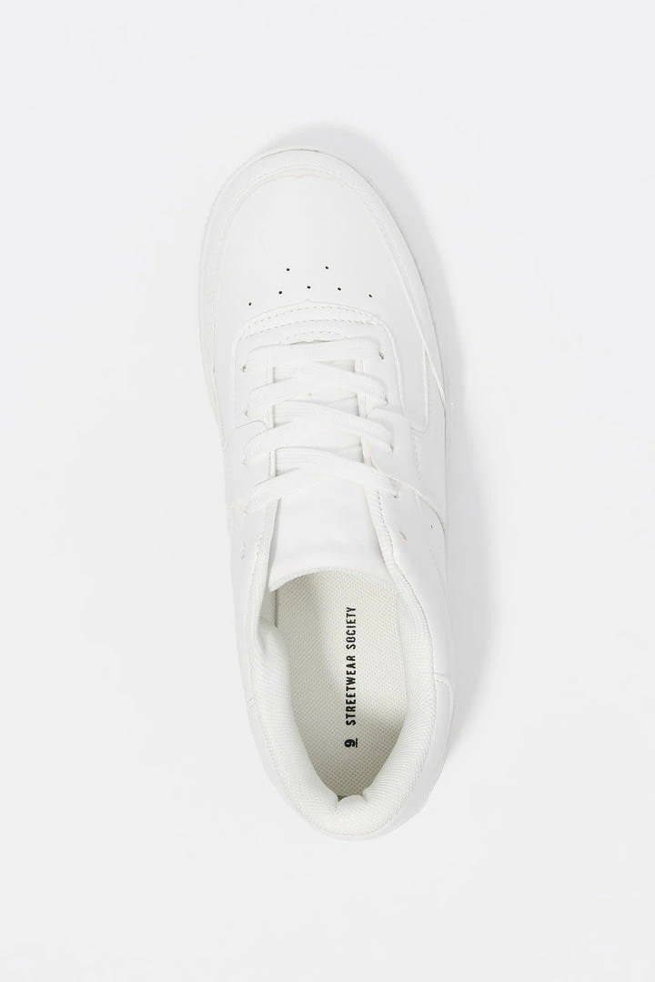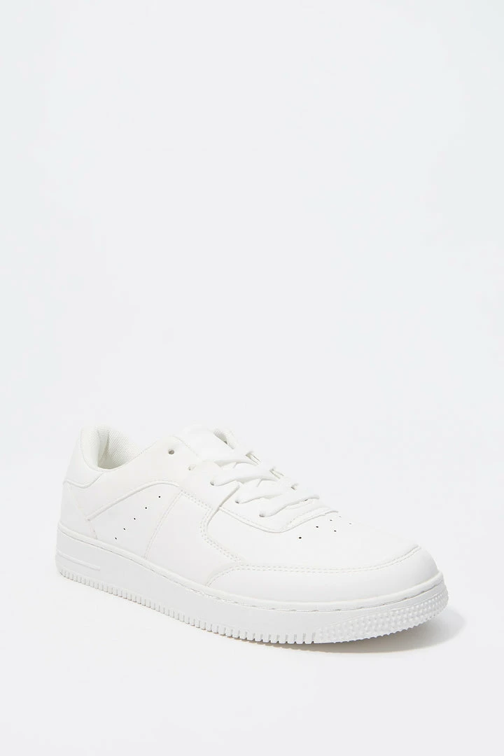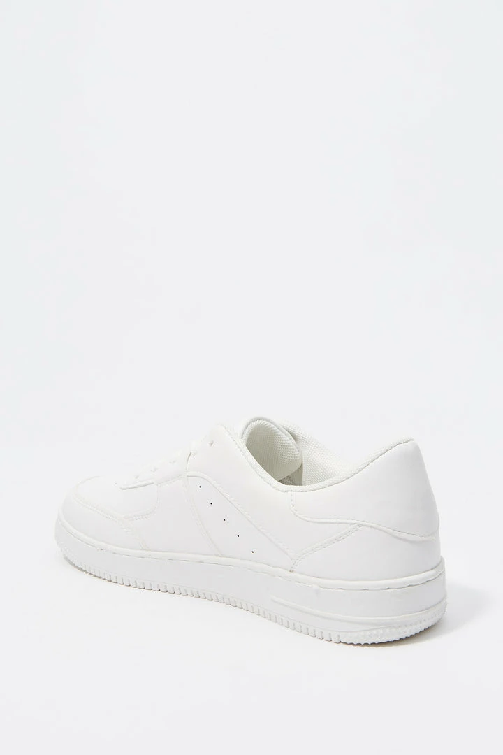 Every girl needs a pair of crisp white sneakers! ItÂ’s a staple item that goes with everything. This shoe features lace-up front, low top and comfort sole.