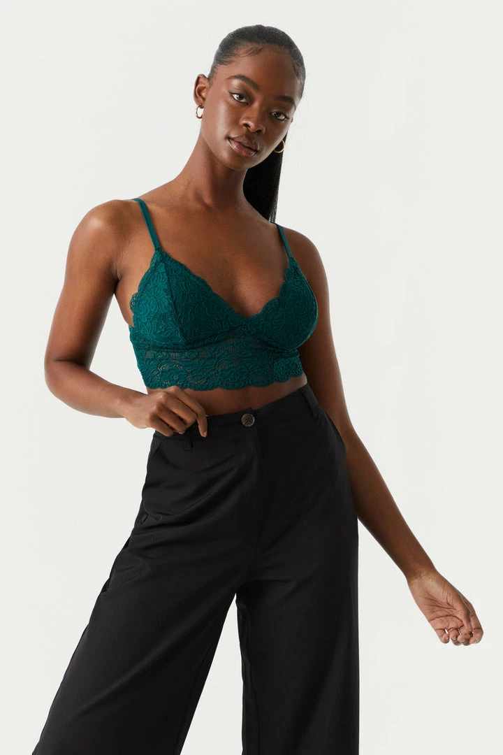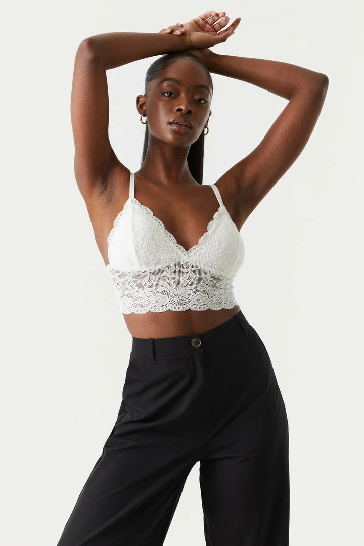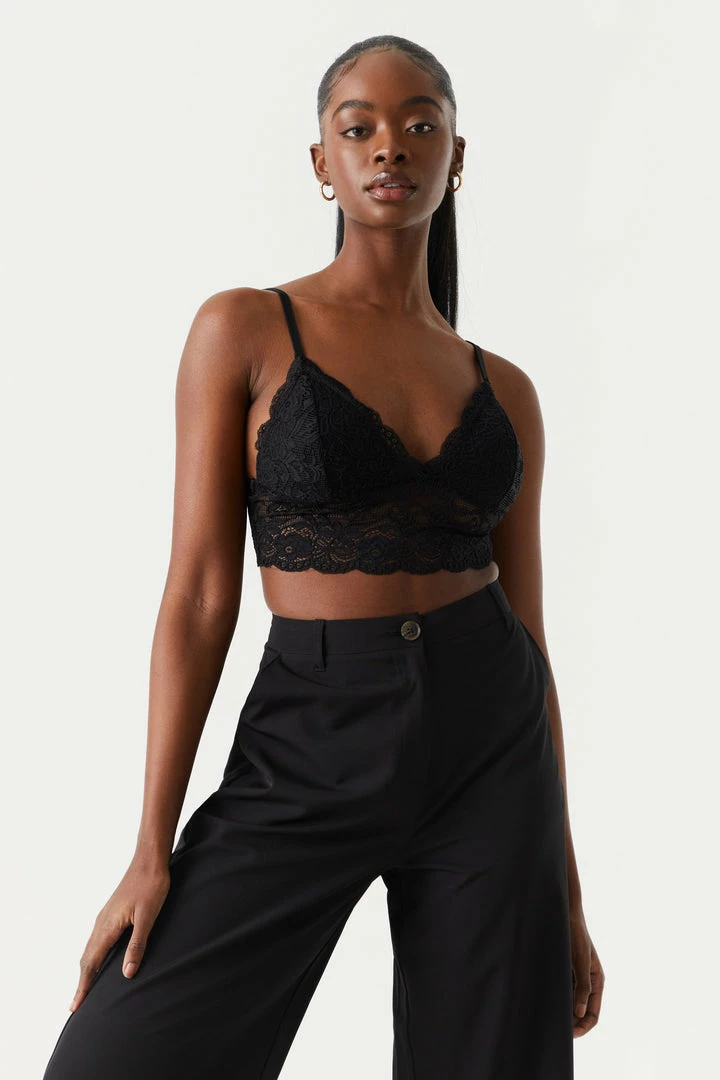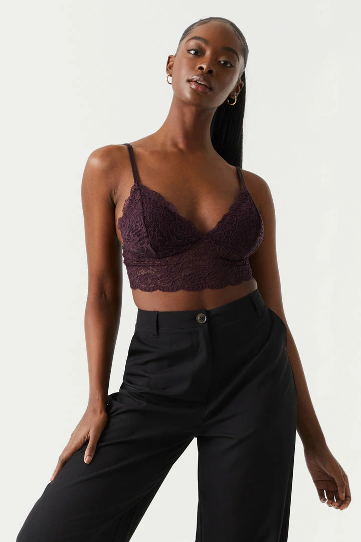 Finally, lace that was designed to show off! Stop keeping lace under wraps and grace the world with this dreamy drip. This bralette features lace bodice, padded cups and adjustable straps. Size runs small.