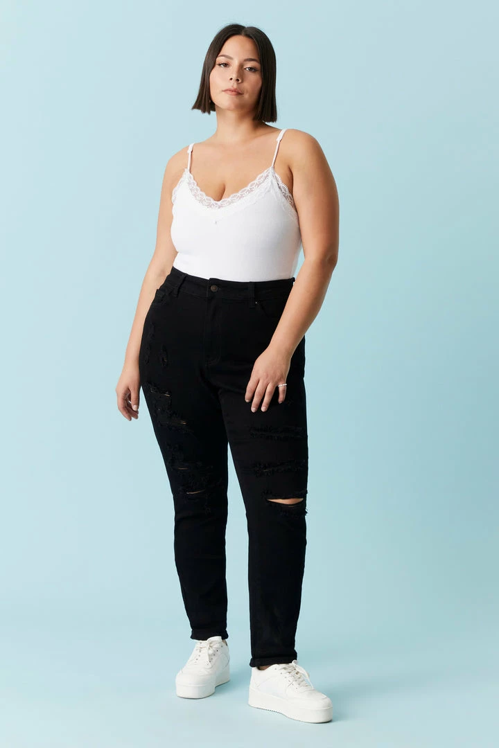 Stitches Ladies Plus Size Distressed Black Wash Boyfriend Jean Bottoms