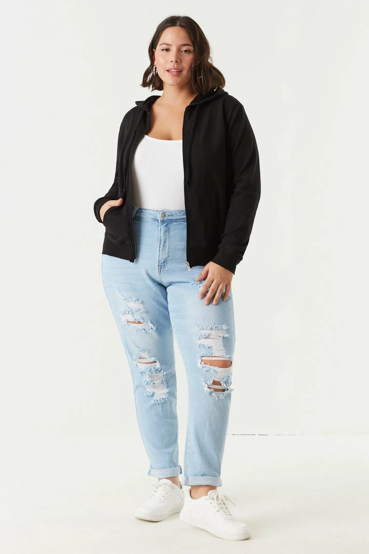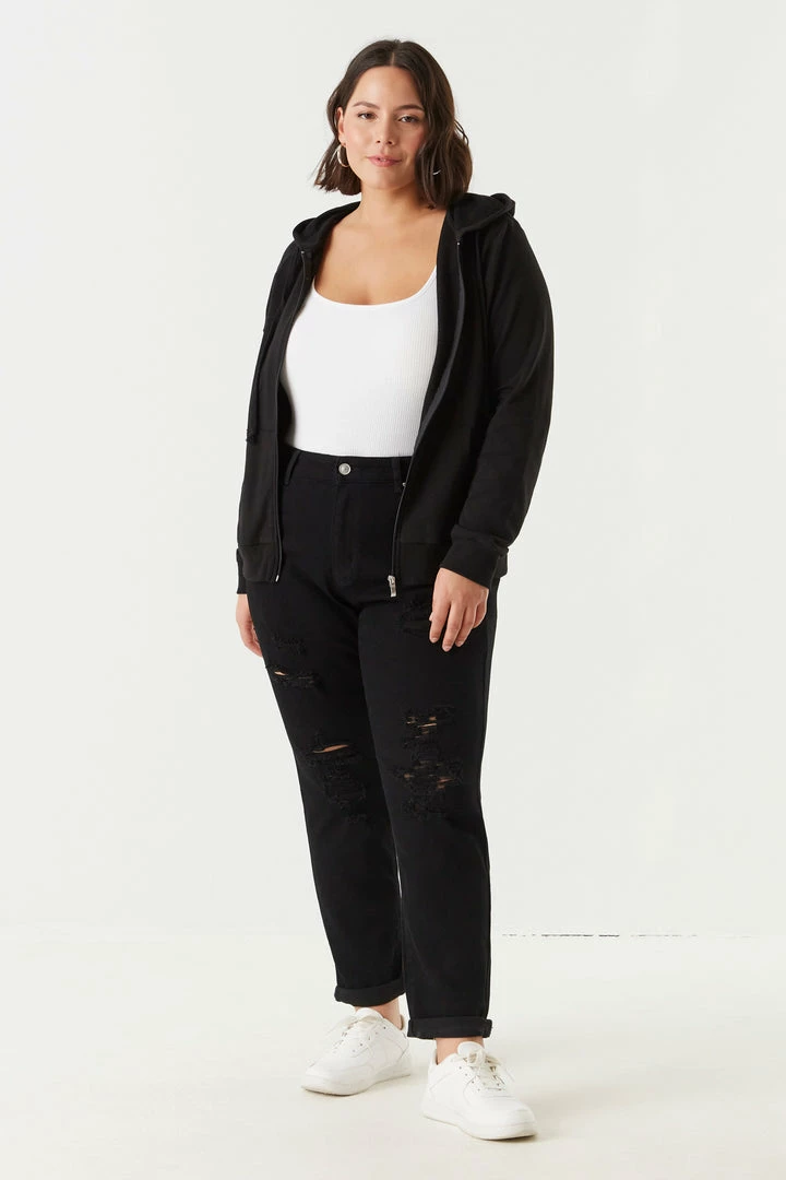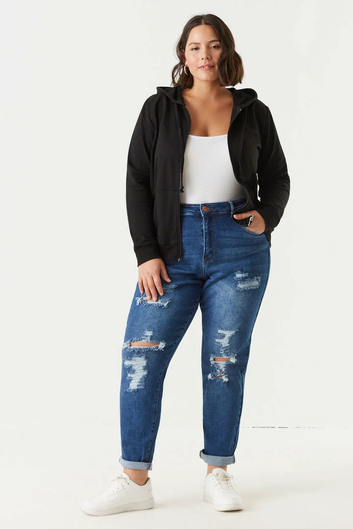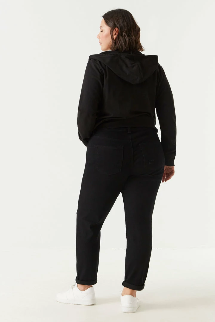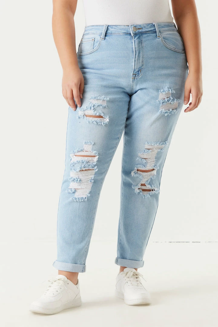 Pair up with this dream date denim and experience the real perks of a boyfriend fit. This jean features high-rise waist, all over distressing, five pockets, zip-fly button-up closure, boyfriend fit, rolled hem and belt loops.