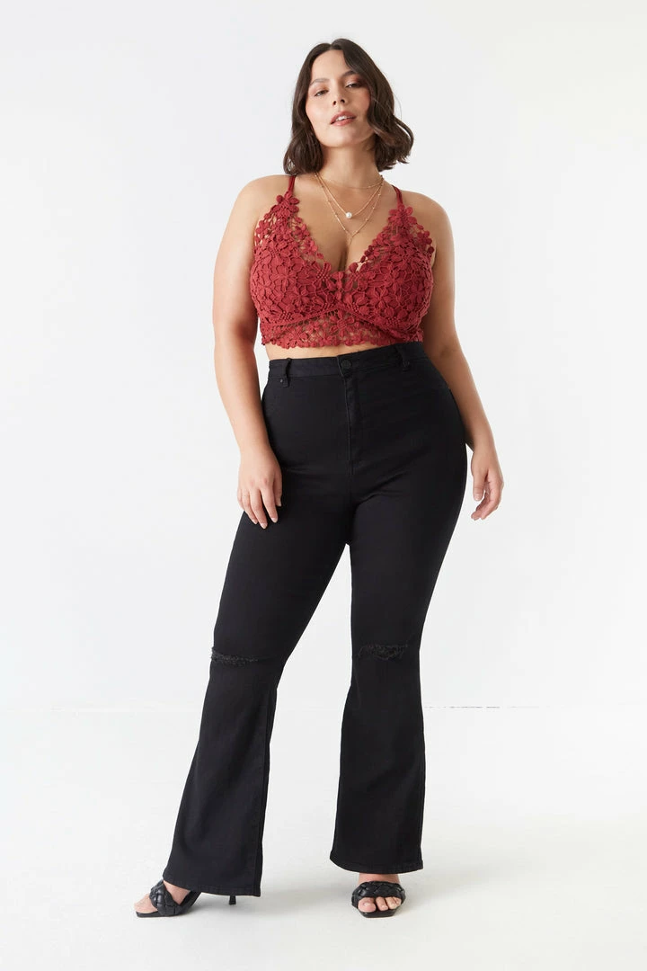 Summer days are on their way, and with them comes crocket crops! The perfect addition to your day off wardrobe. This top features adjustable straps, cross back, floral knit crochet bodice and v-neck. Size Runs Small.