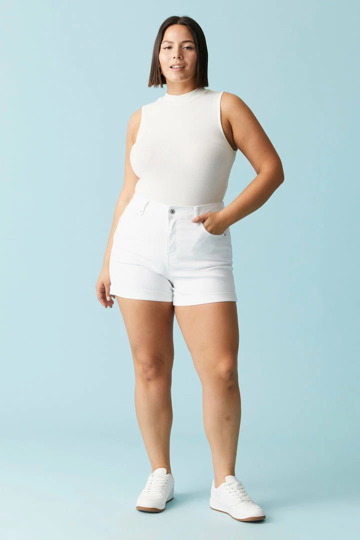 Treat your peach to some push-up action with these ultra flattering jean shorts. This short features white wash, push-up fit, zip-fly button-up closure, high-rise waist, five pockets, belt loops and rolled hem.