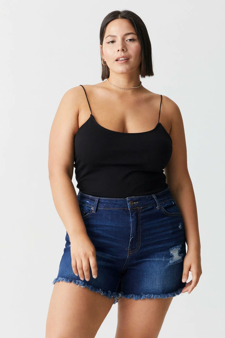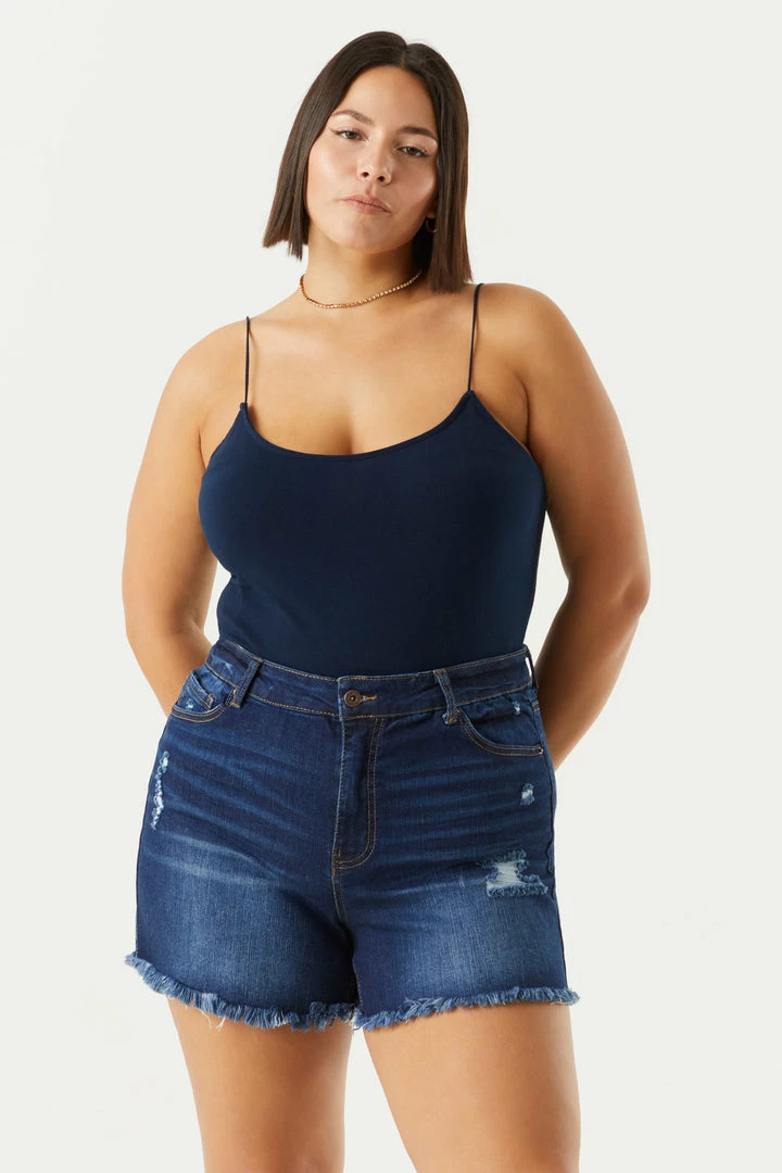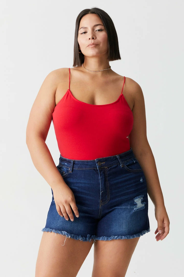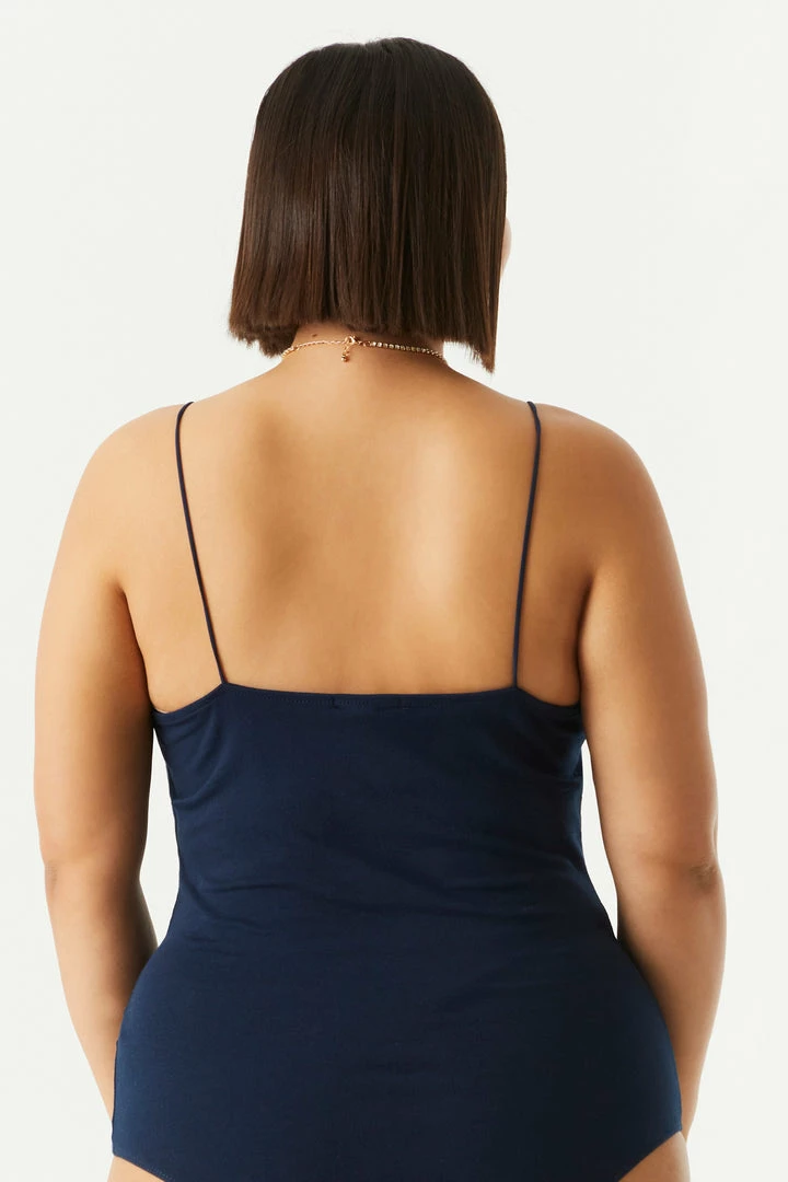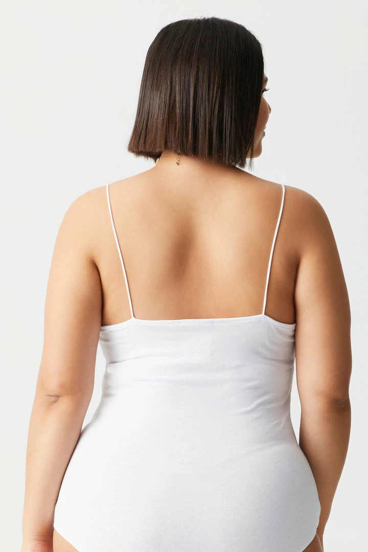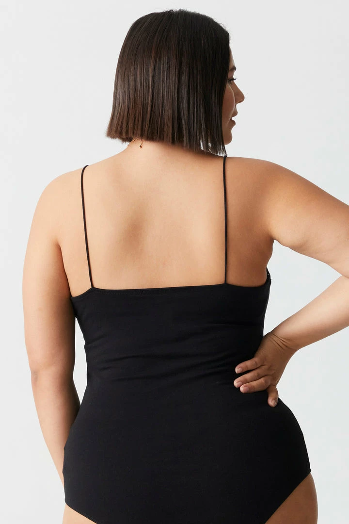 Add this flawless fit to any bottom and be prepared to dance the night away without worry. This bodysuit features thin cami straps, scoop neckline and clasp closure.