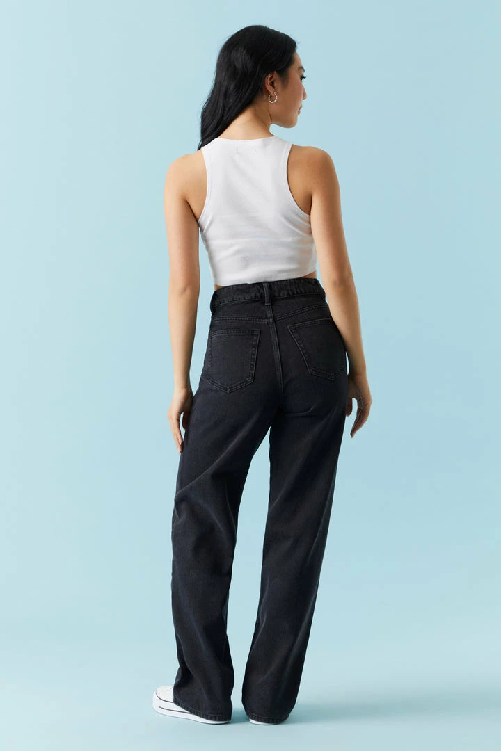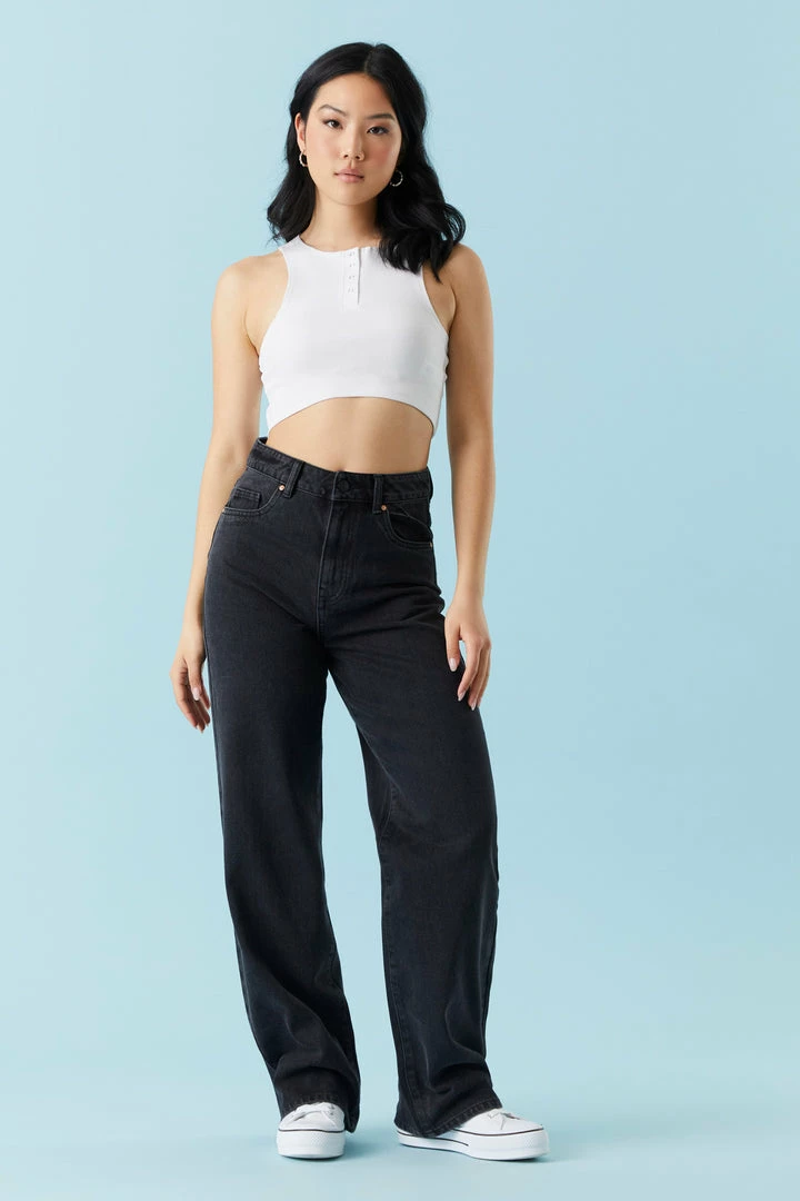 Cool days call for even cooler jeans! Keep your fit fresh with these bold bottoms. This jean features wide leg, high-rise waist, black wash, distressing, zip-fly button-up closure, belt loops and five pockets.