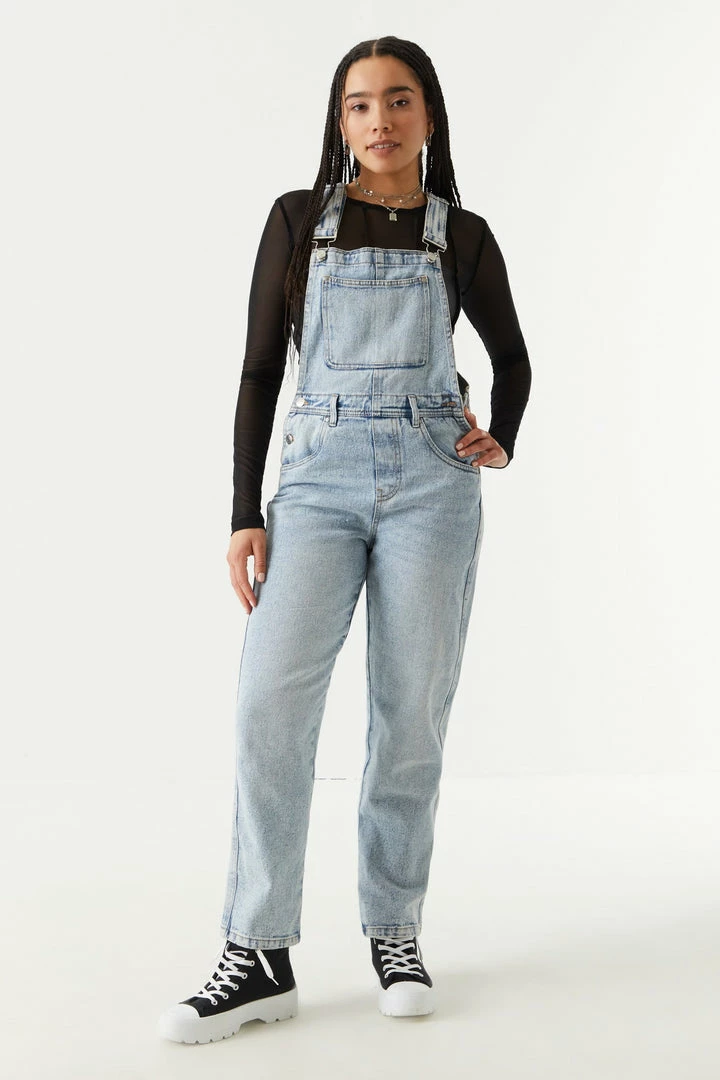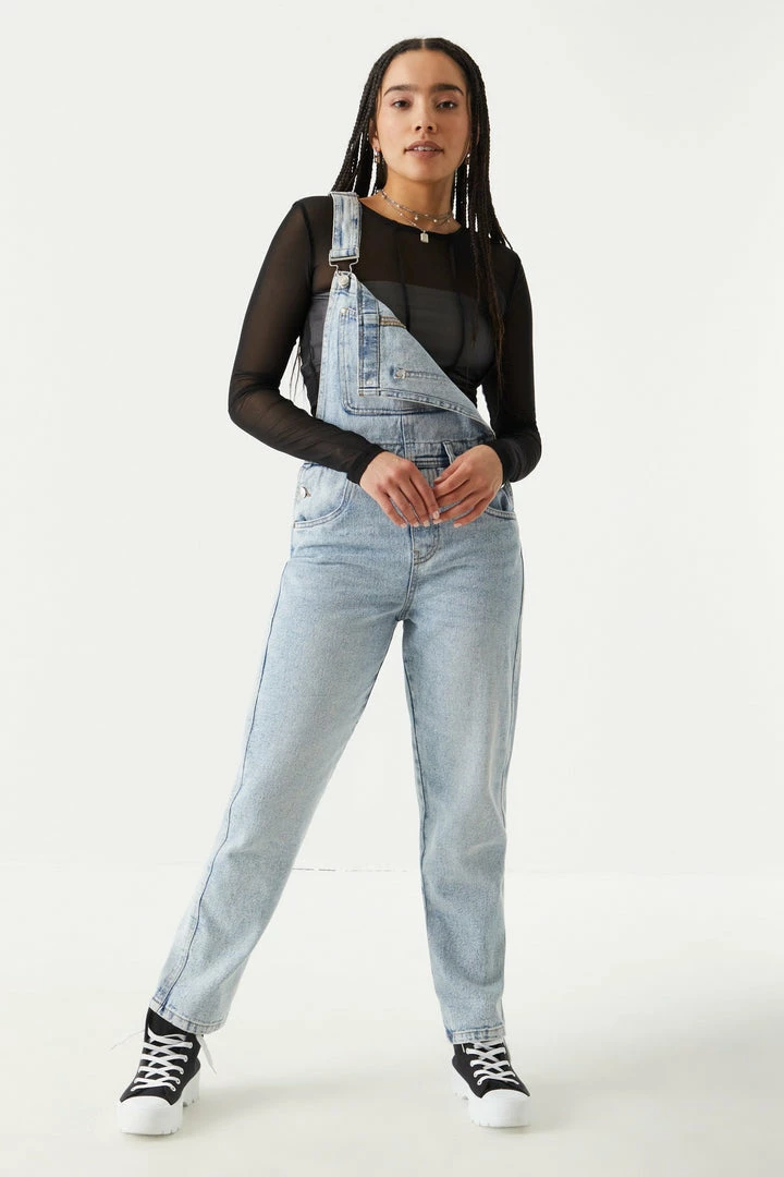 Choose trendy denim over-all else! This stylish one piece serves serious style with minimal effort. These overalls features adjustable bib buckle straps, belt loops, side button-up closure, all over distressing, one front chest pocket and four side pockets.