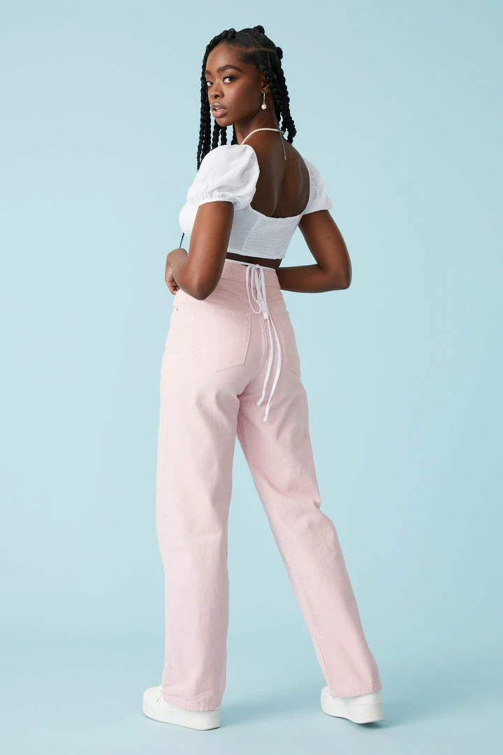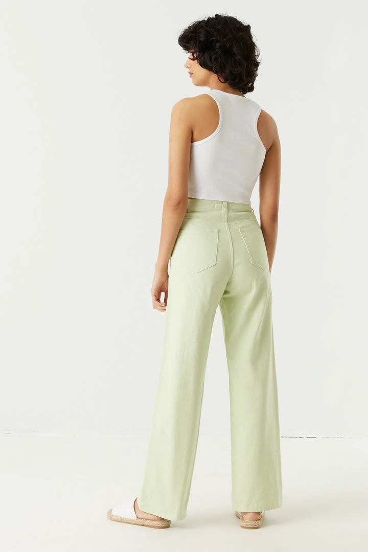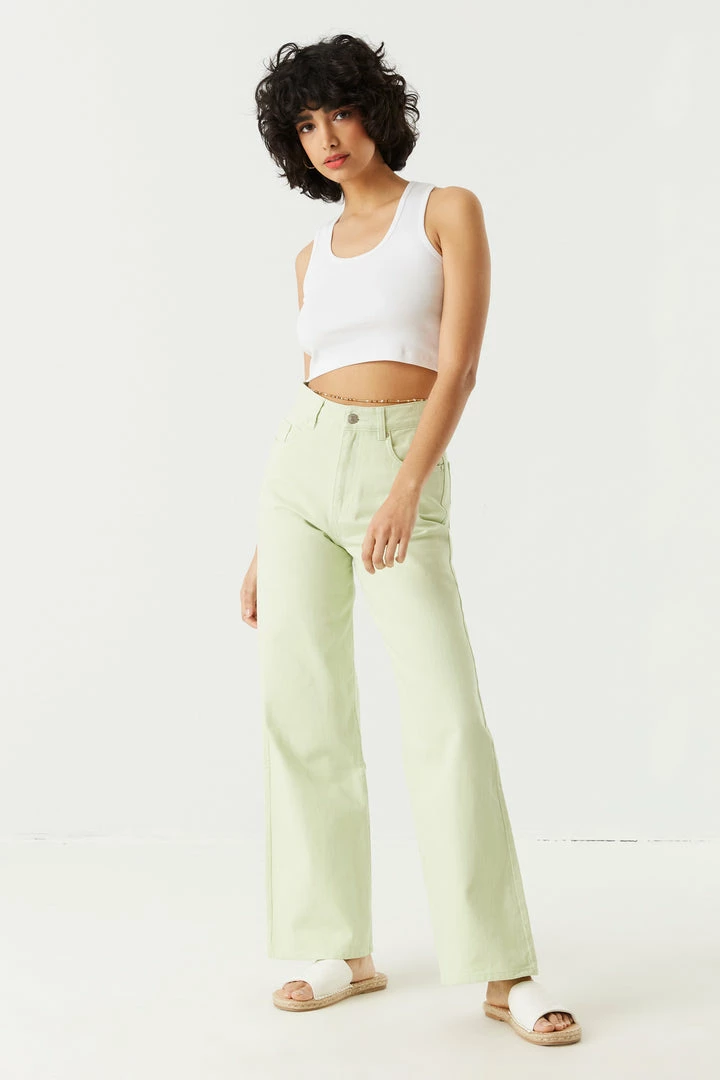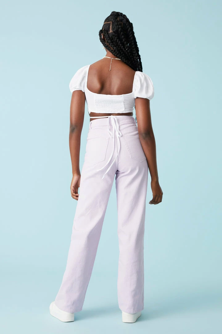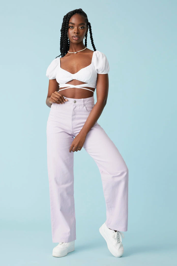 When in doubt, wide leg it out! This ageless silhouette has passed the test of time and is making it’s comeback as up-style of the season. This pant features ultra-high-rise waist, zip-fly button-up closure, five pockets, belt looks and wide leg fit. Model’s Height: 5’9″