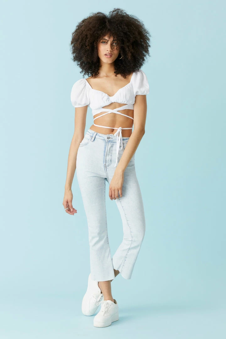 When the sun goes down and the shorts go away, these summer jeans come out to play! This jean features low-rise waist, kick flare leg, cropped fit, zip-fly button-up closure, belt loops and five pockets. NOTE: This pair of jeans runs larger than our regular fits. We recommend ordering one size down for the perfect fit.