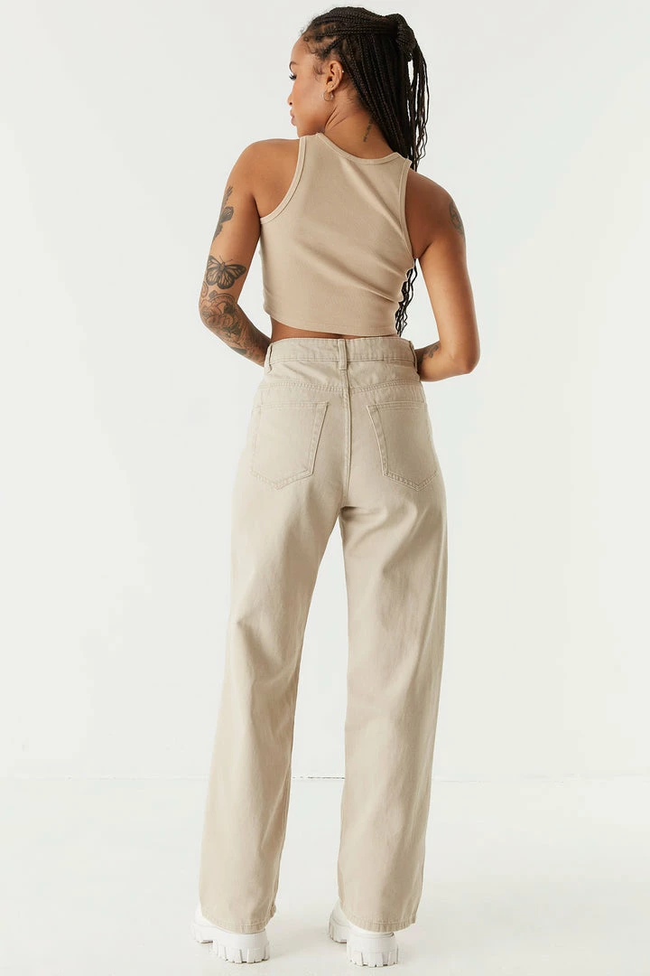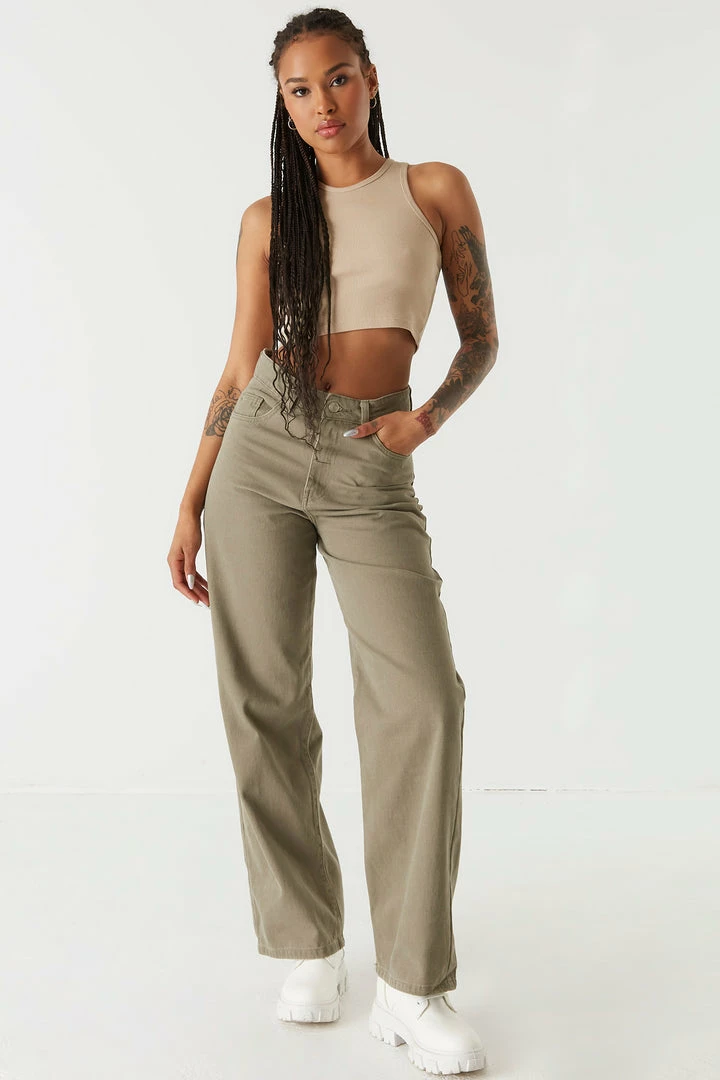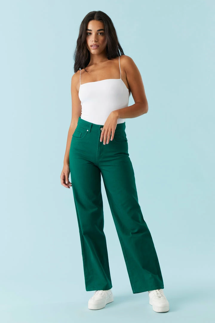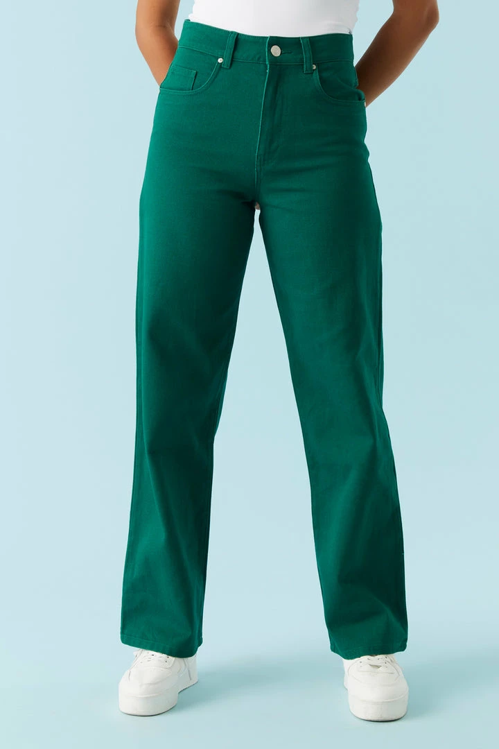 Get yourself a pair of pants that go from work week to weekend with minimal effort! This jean features high-rise waist, zip-fly button-up closure, five pockets, belt loops and wide leg.