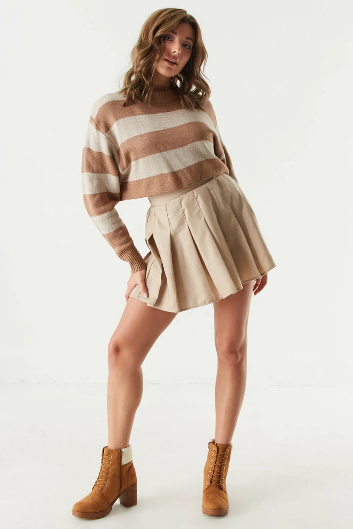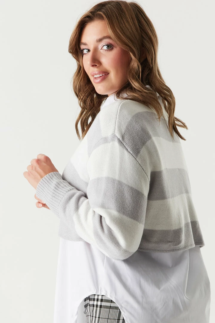 Bare a little by raising the hemlines with this stylish cropped sweater. This sweater features a ribbed crew neckline, long Dolman sleeves and cropped length. Size Runs Small.