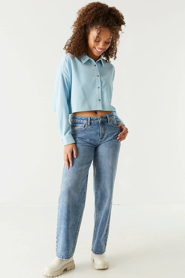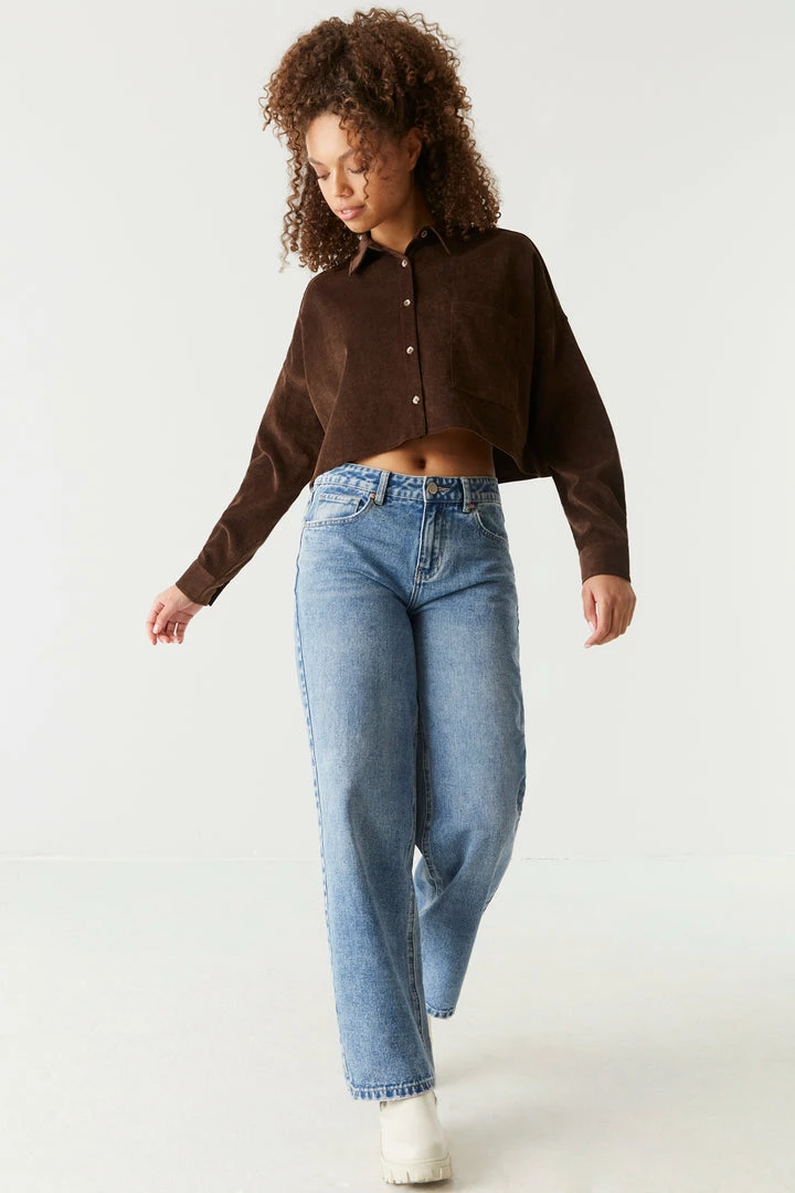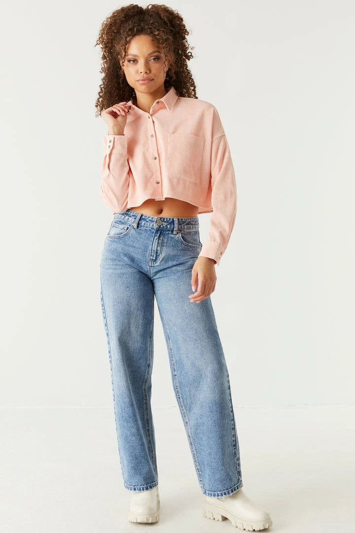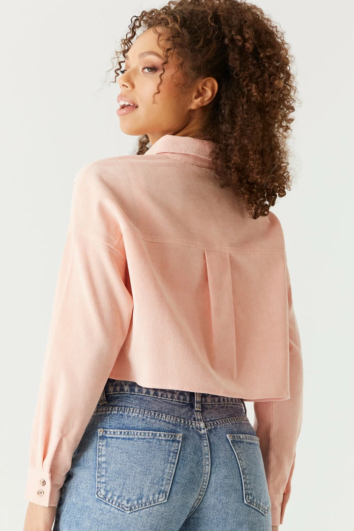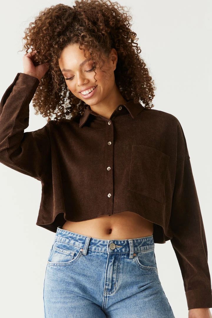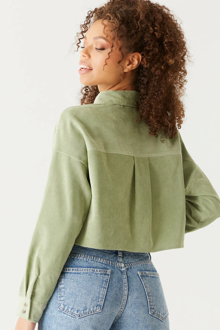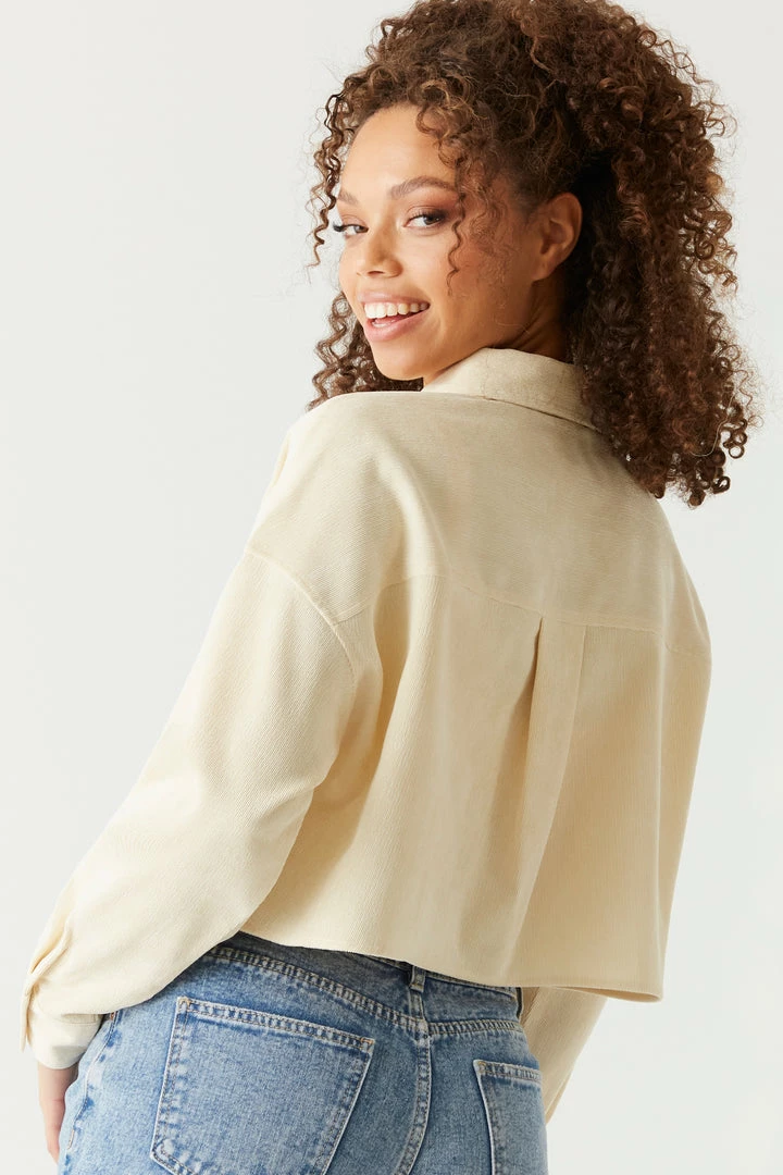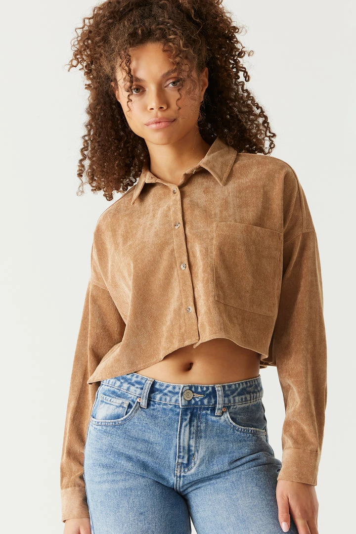 Stylish has never been so soft! This top features long sleeves, button-up front closure, collar and all over corduroy ribbing. Size Runs Small.
