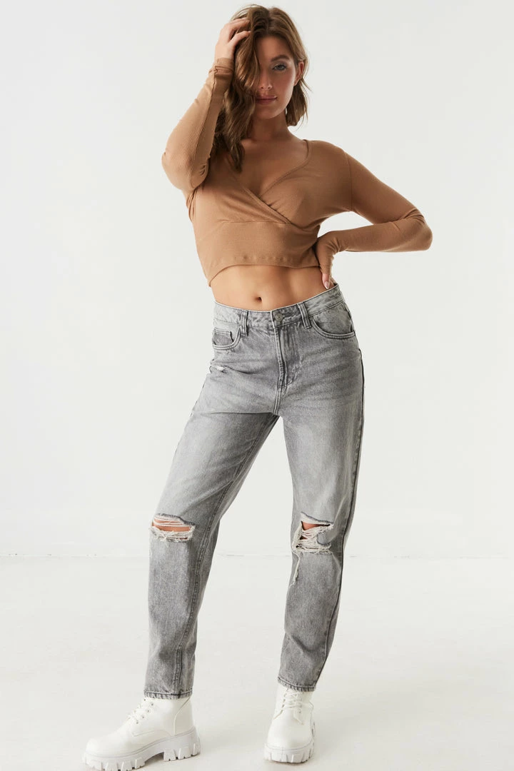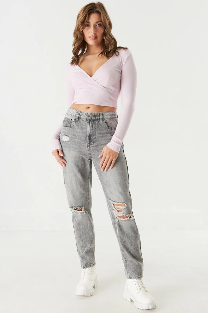 No closet is complete without a V-neck cropped top! Perfect for pairing with your fave high-rise denim. This top features a V-neck surplice front, long sleeves, ribbed knit material and cropped length. Size Runs Small.