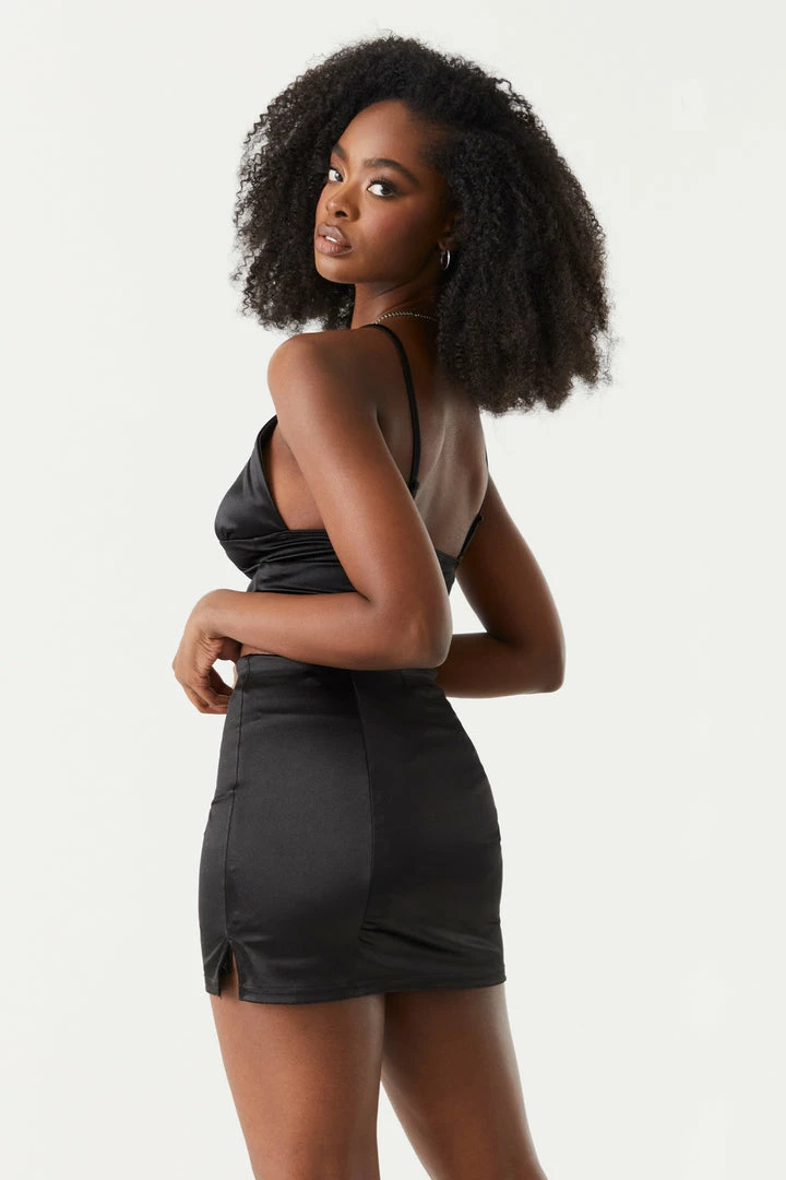 Satin is in! Drape yourself in this luxurious cami for a picture perfect fit every time. This cami features adjustable spaghetti straps, deep v-neck, fitted waist, satin material and padded bust. Size runs small.