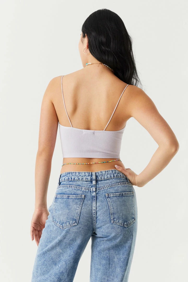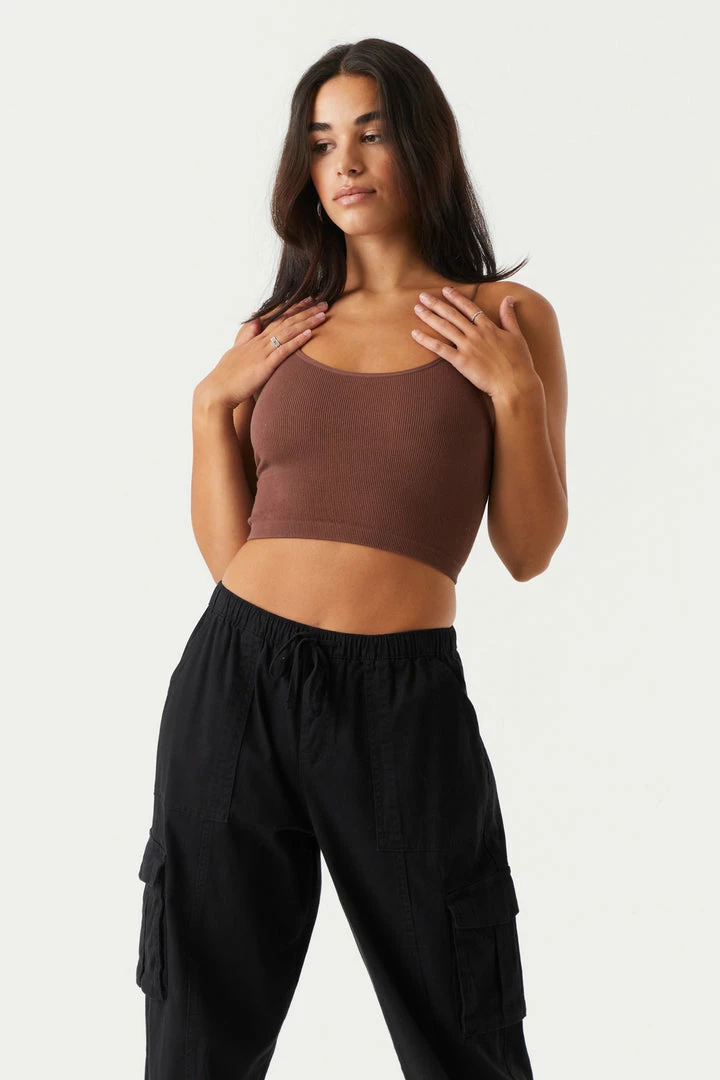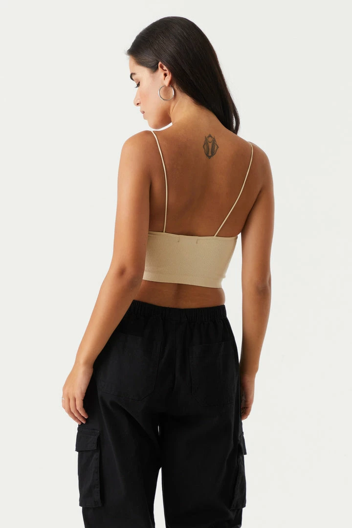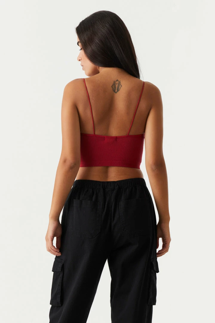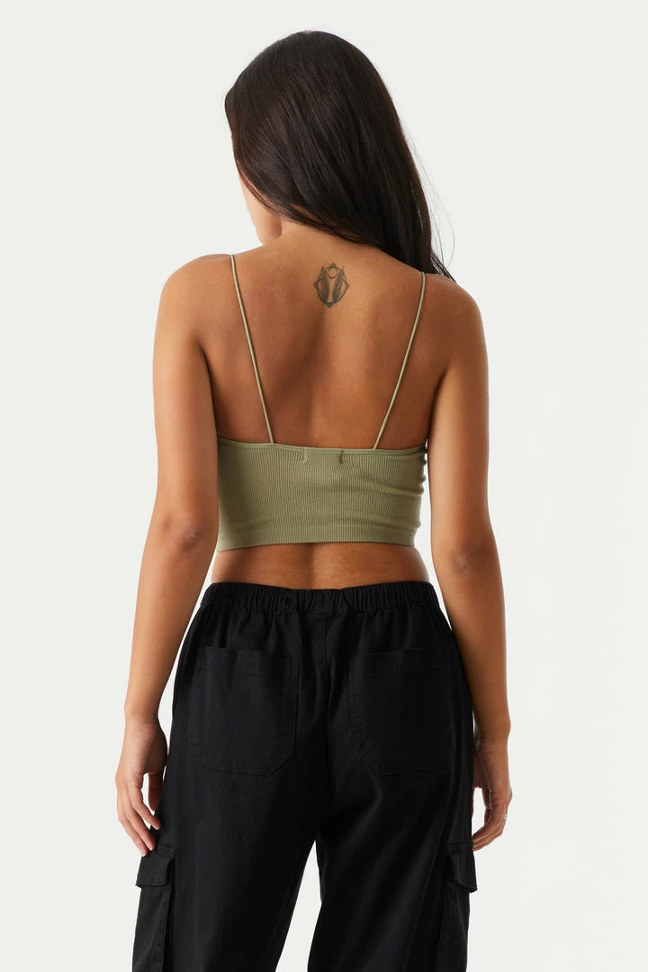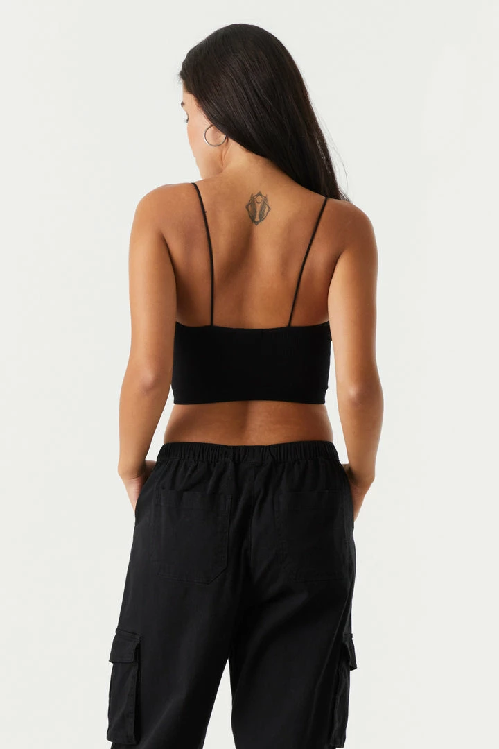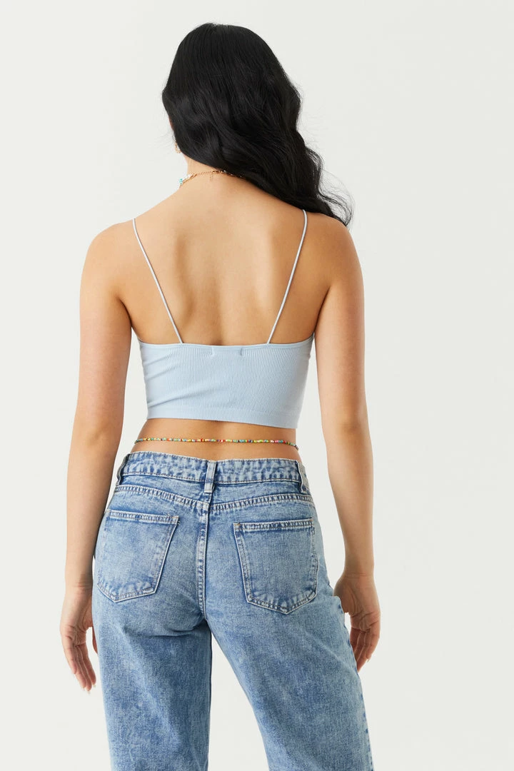 This dreamy base layer will fit seamlessly into your tiny top rotation. This cami features bungee straps, scoop neckline and cropped fit. Size runs small.