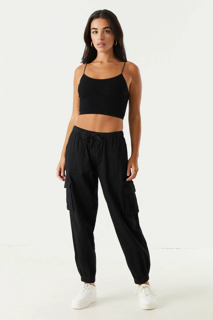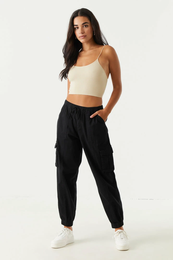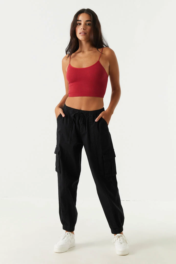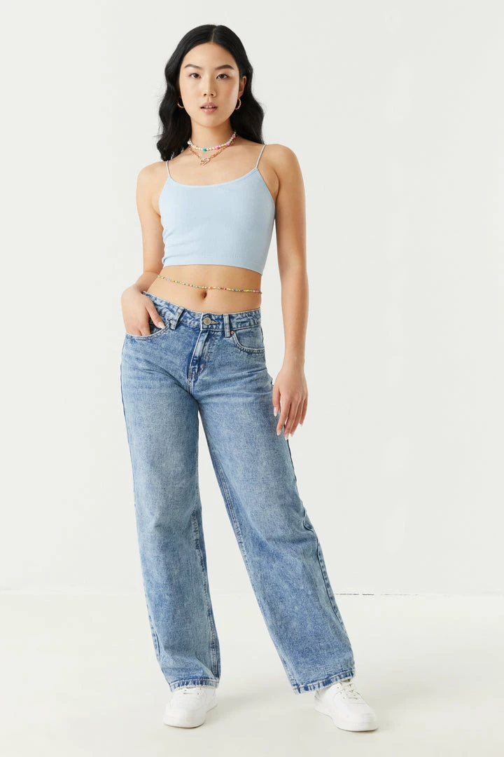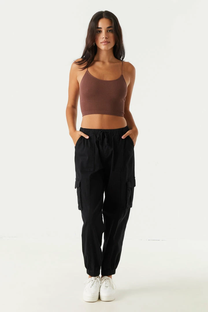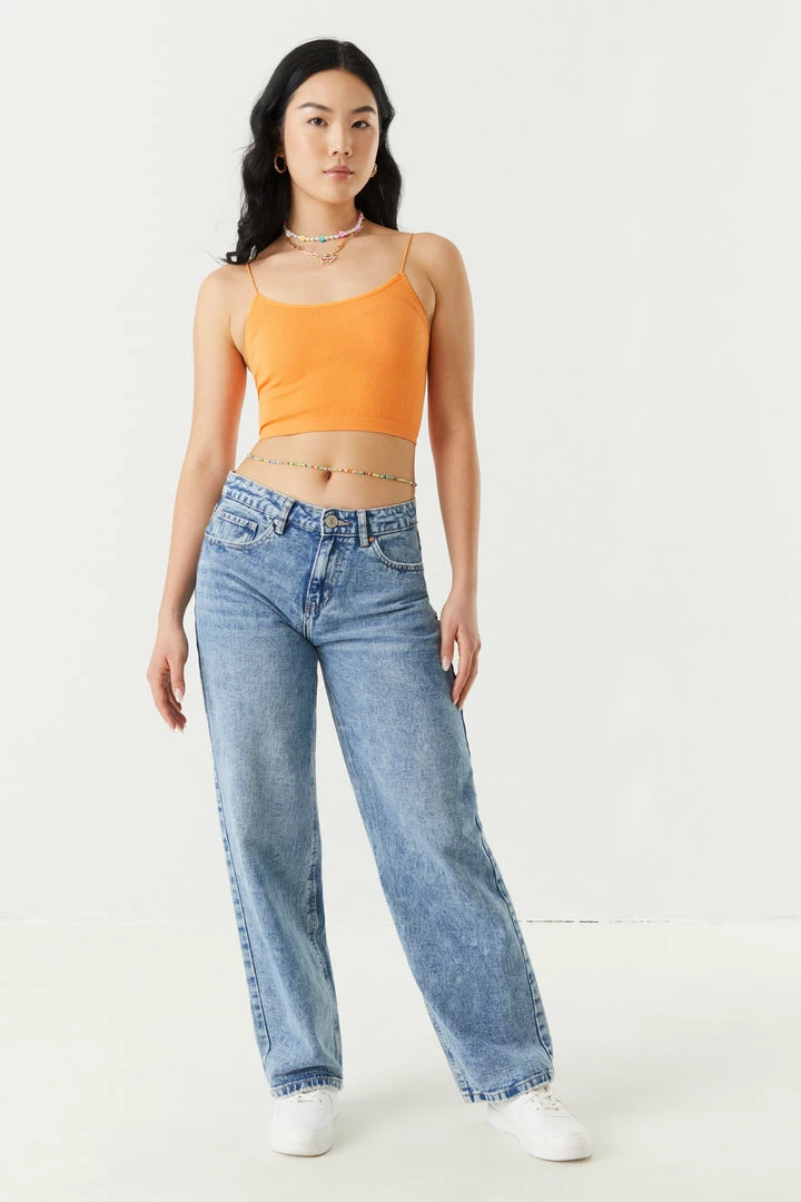 This dreamy base layer will fit seamlessly into your tiny top rotation. This cami features bungee straps, scoop neckline and cropped fit. Size runs small.