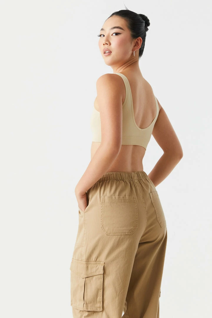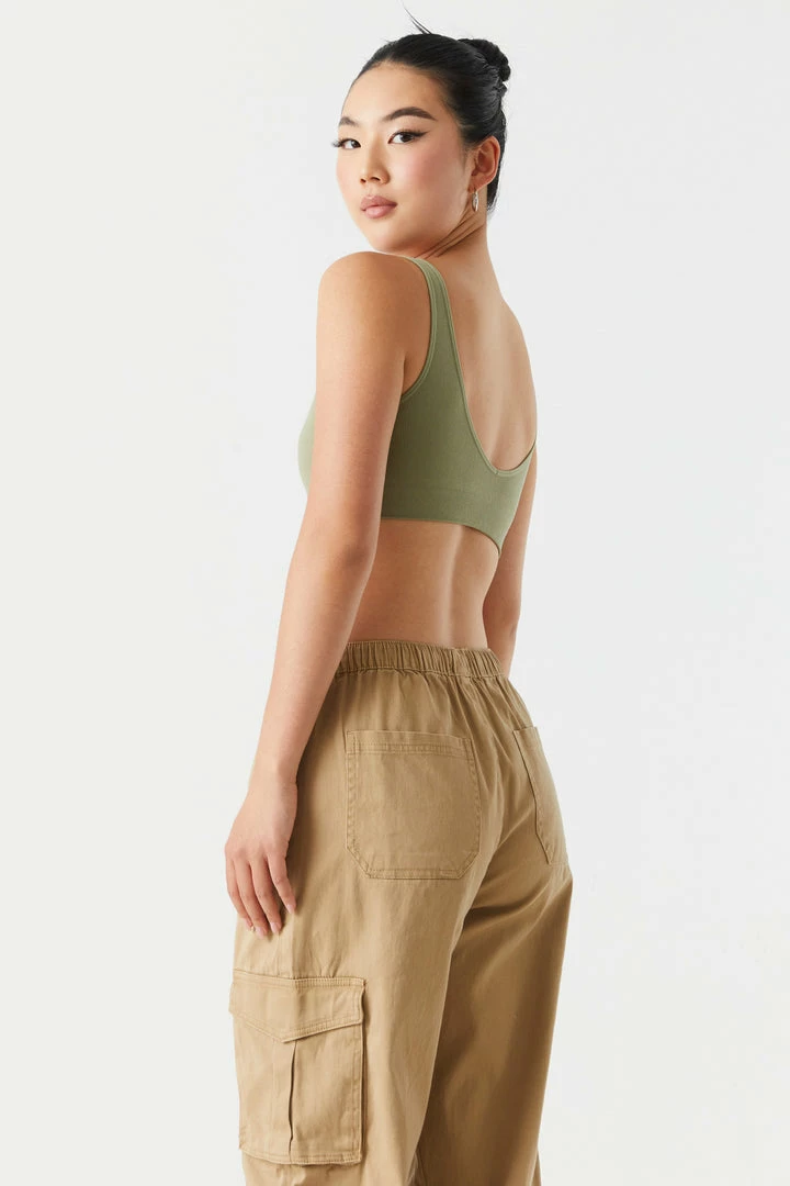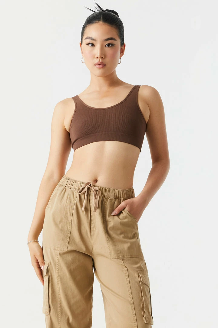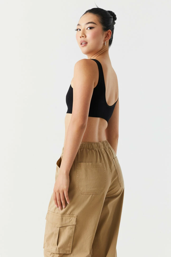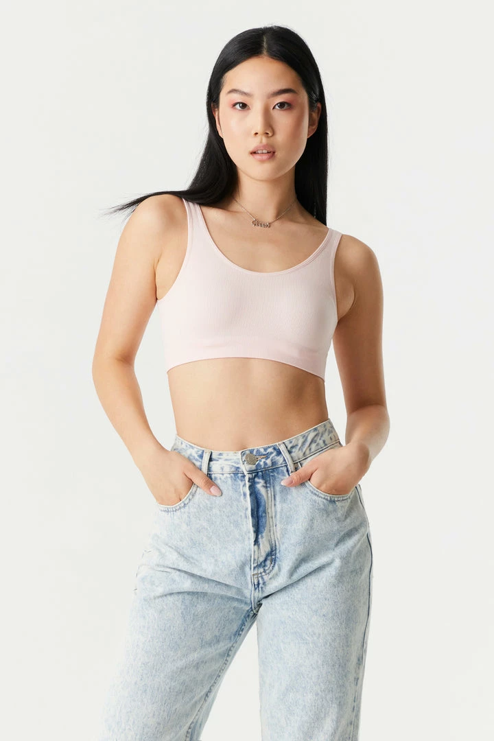 Show alittle skin in this backless basic. Perfect for sunny days, or layered with your favourite jean jacket for cooler evenings. This tank top features seamless design, all over ribbing, scoop back and cropped fit. Size runs small.
