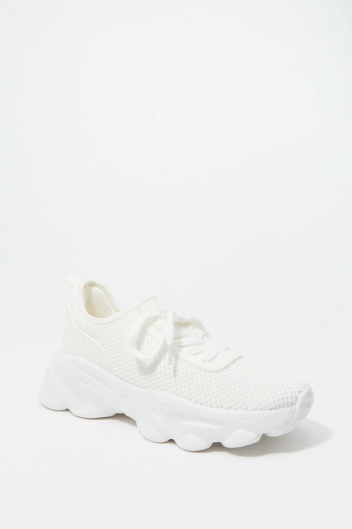 Float through life with the grace of a bubble in these trendy sneakers. This sneaker features knit material, lace-up front, bubble sole and rubber toe cover.