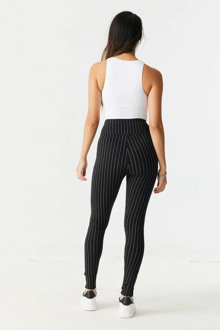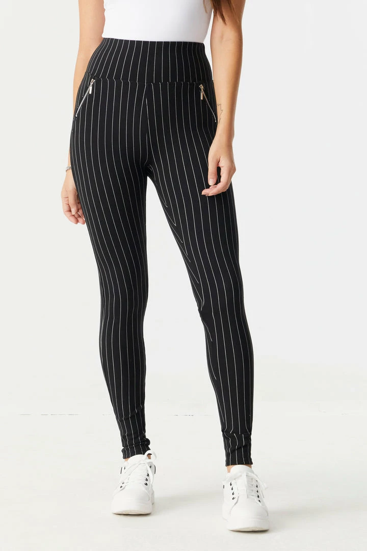Don’t let loose pockets slow your stride! Whether running errands or running on the treadmill, these zip-up pockets will keep your essential items secure. This legging features high-rise waist, two zip-up pockets, pinstripe print, full length fit and soft material. Size Runs Small.