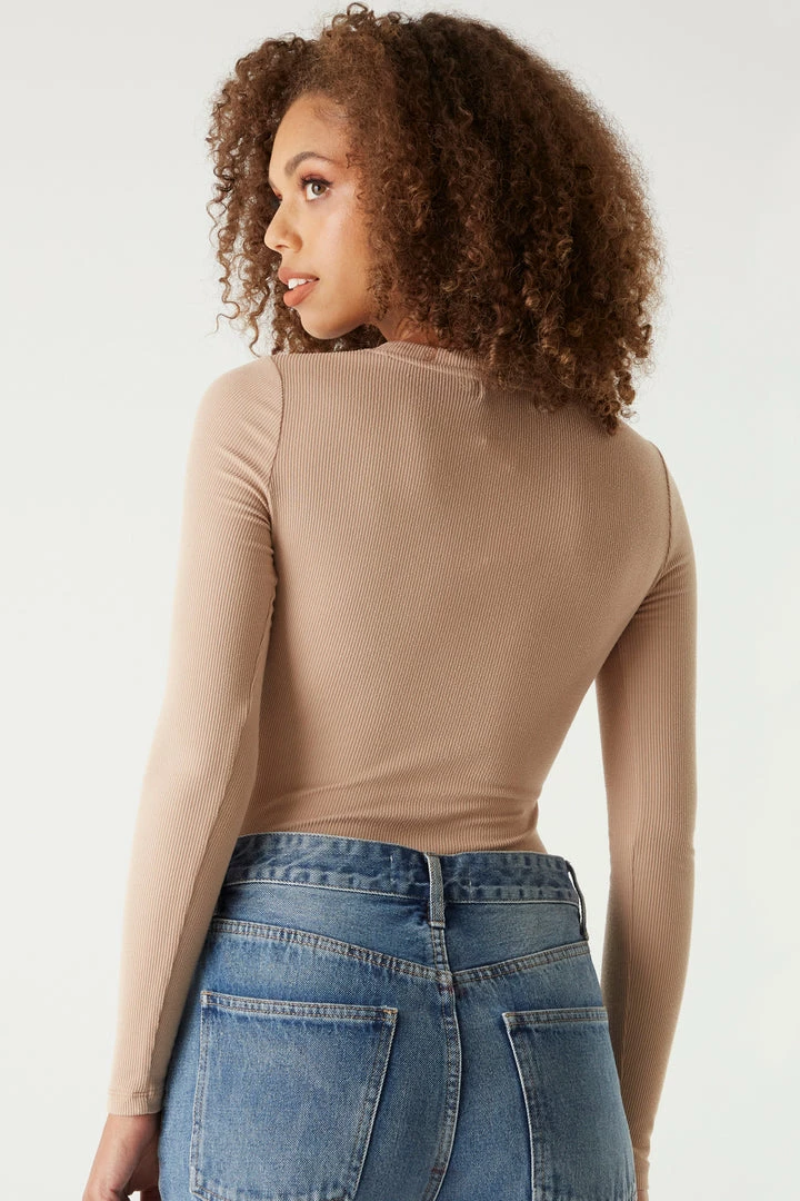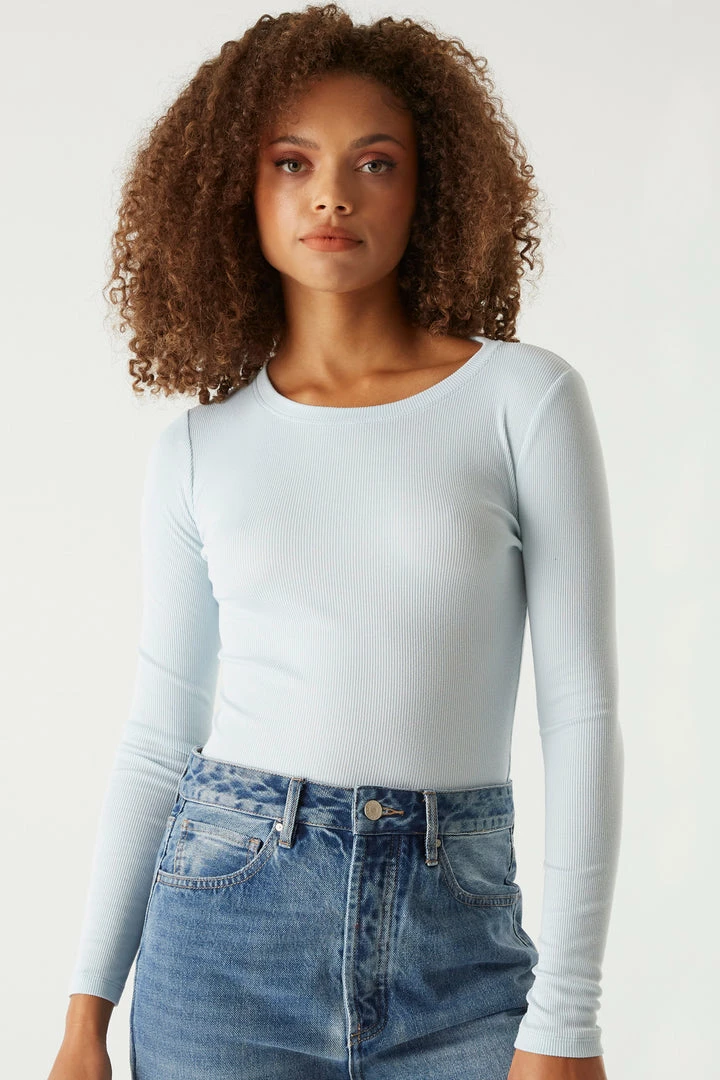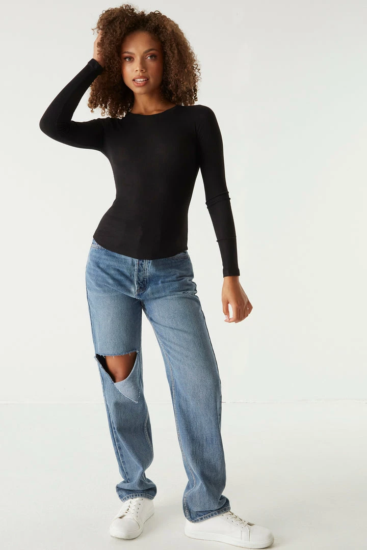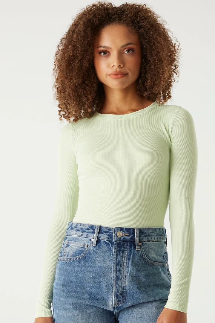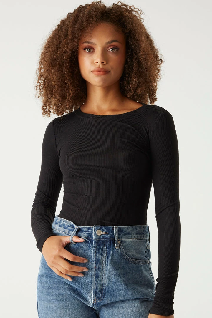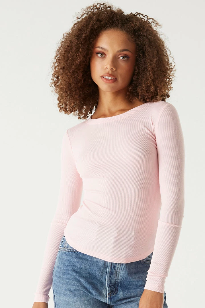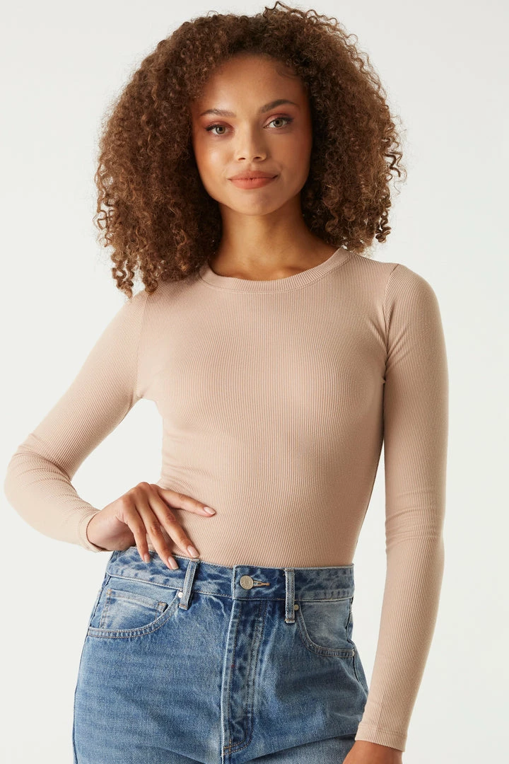 A core piece you can dress up or down! This top features a crew neckline, ribbed knit material and long sleeves. Size Runs Small.