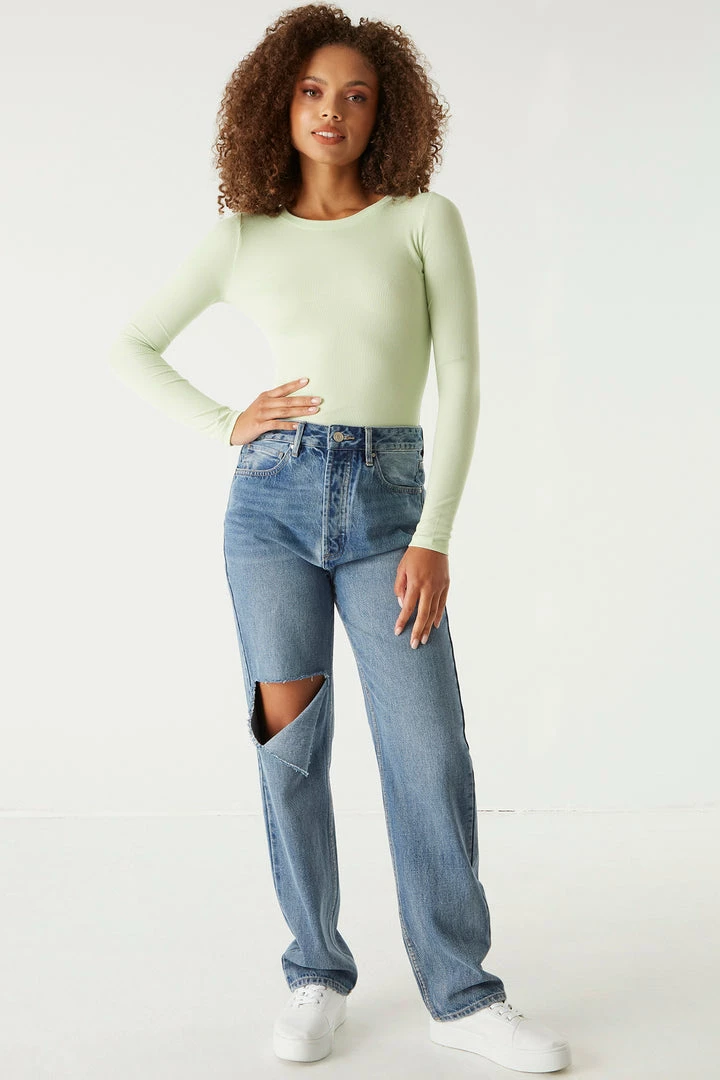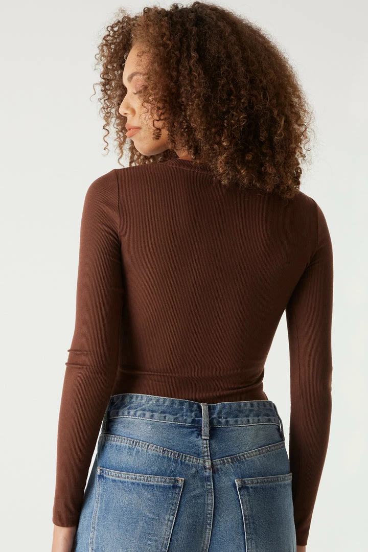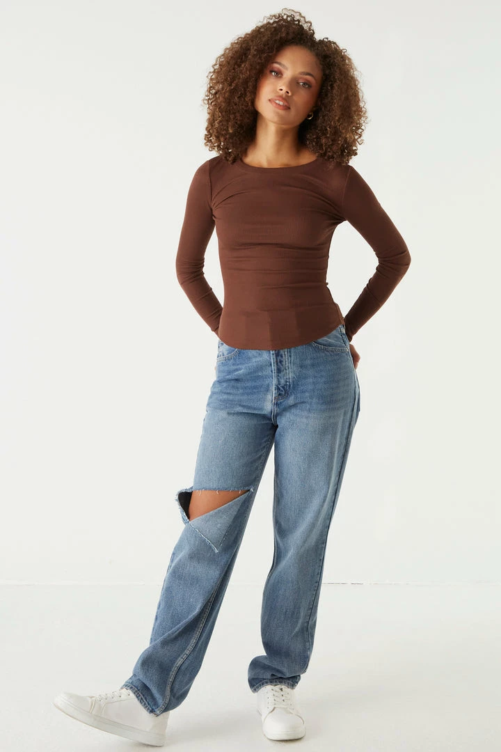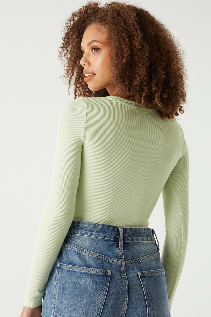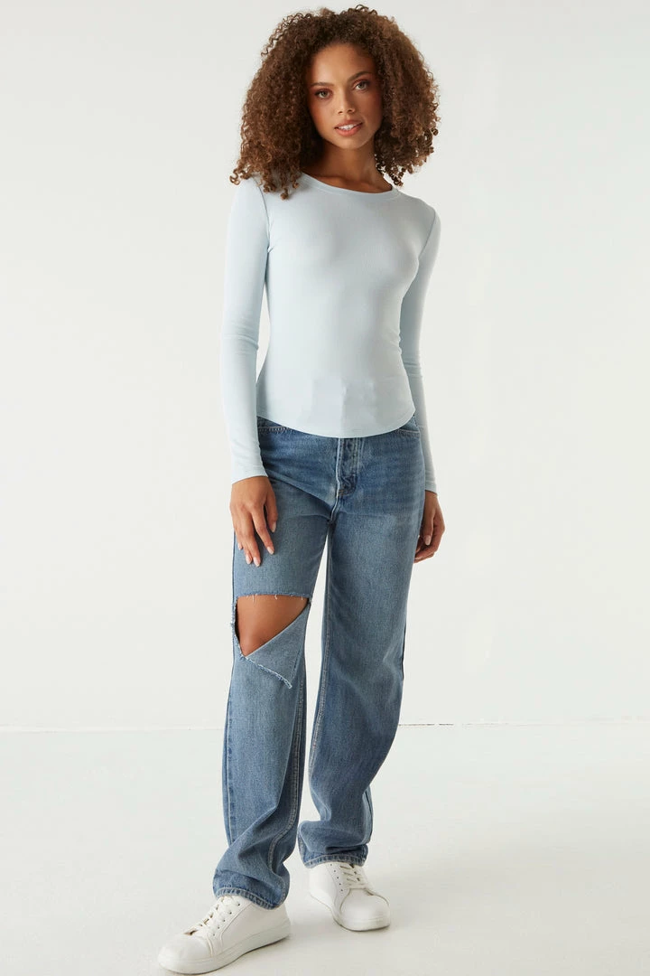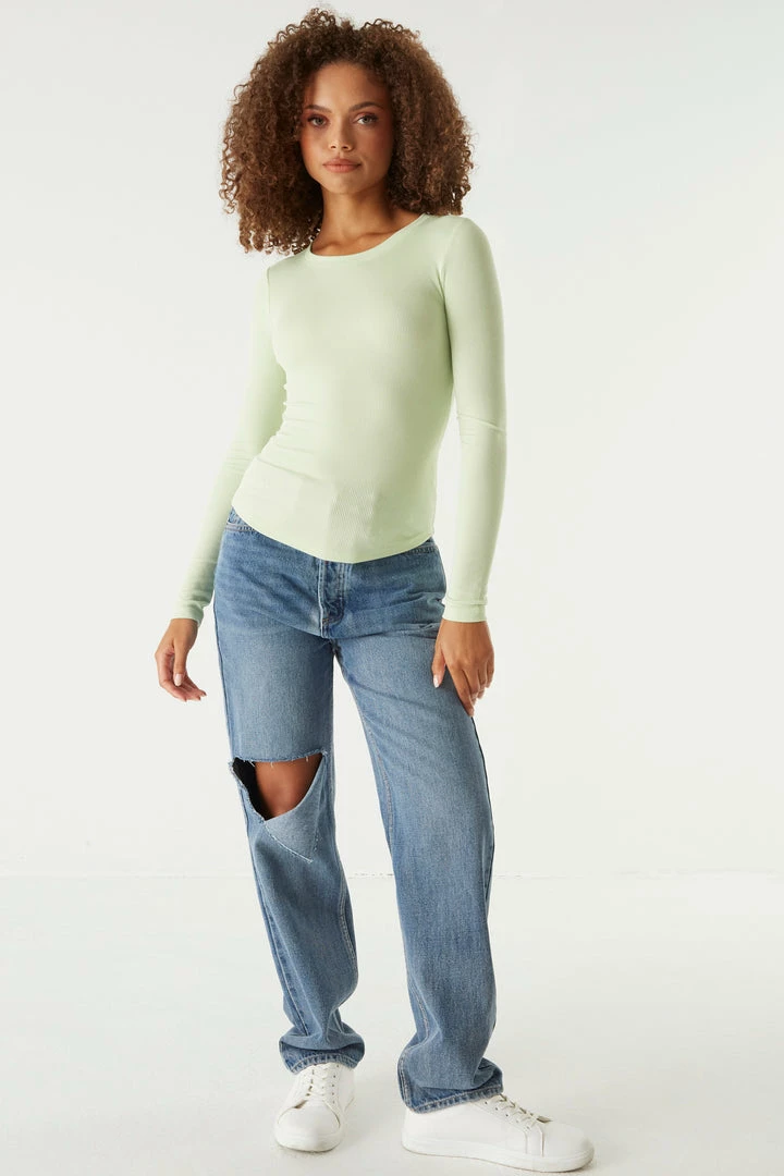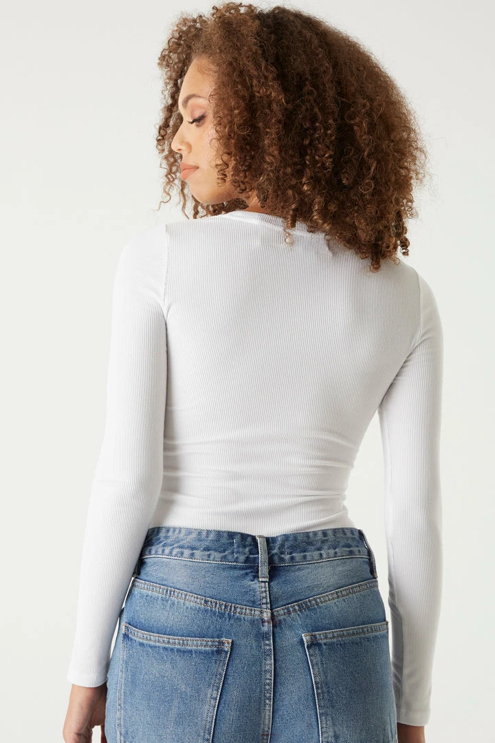 A core piece you can dress up or down! This top features a crew neckline, ribbed knit material and long sleeves. Size Runs Small.
