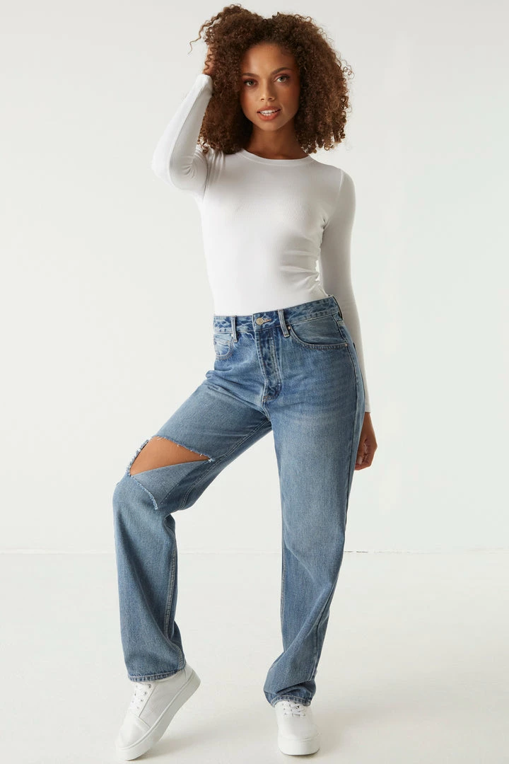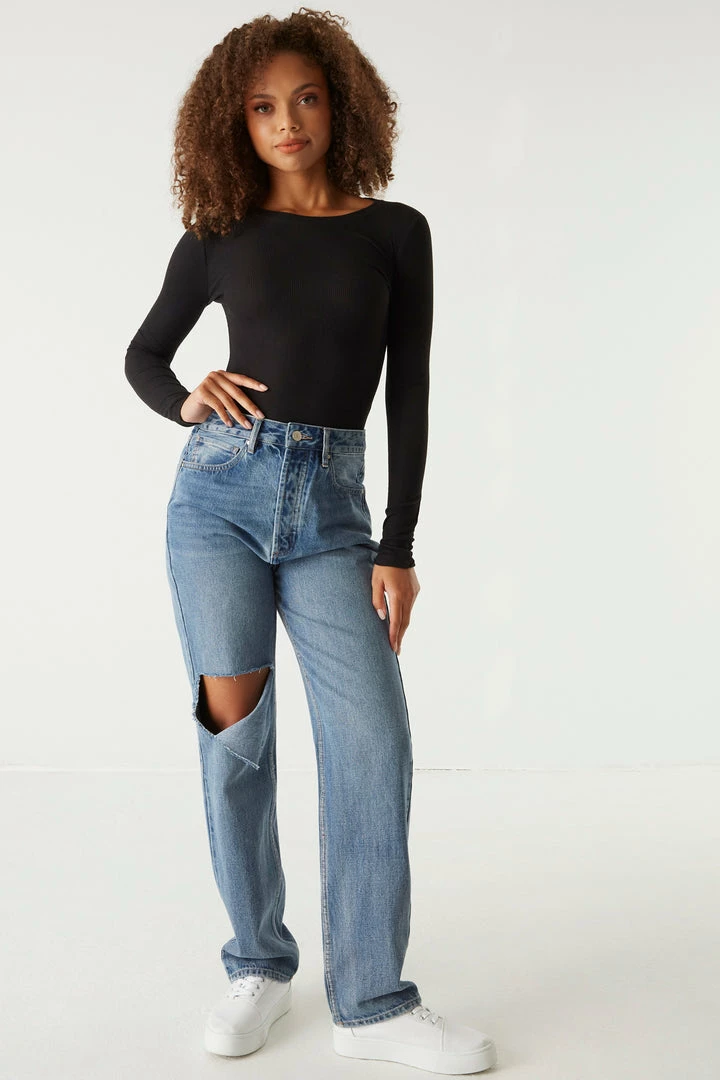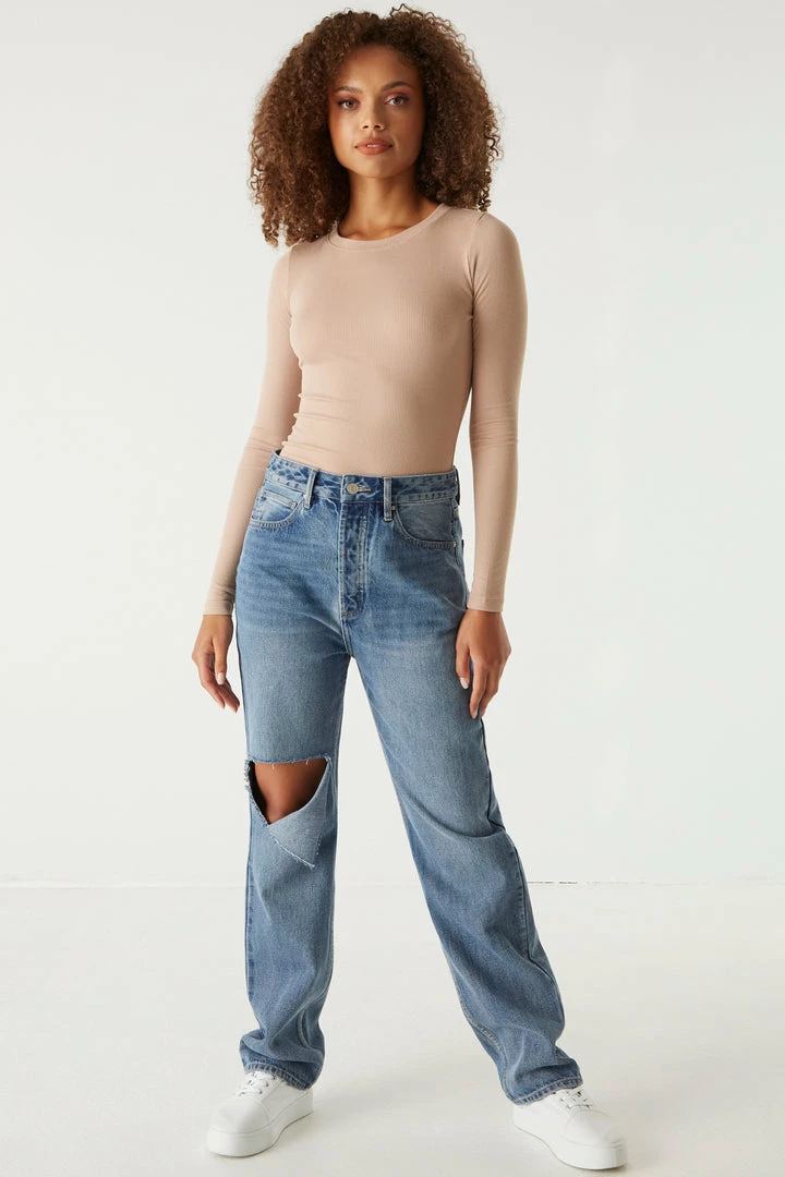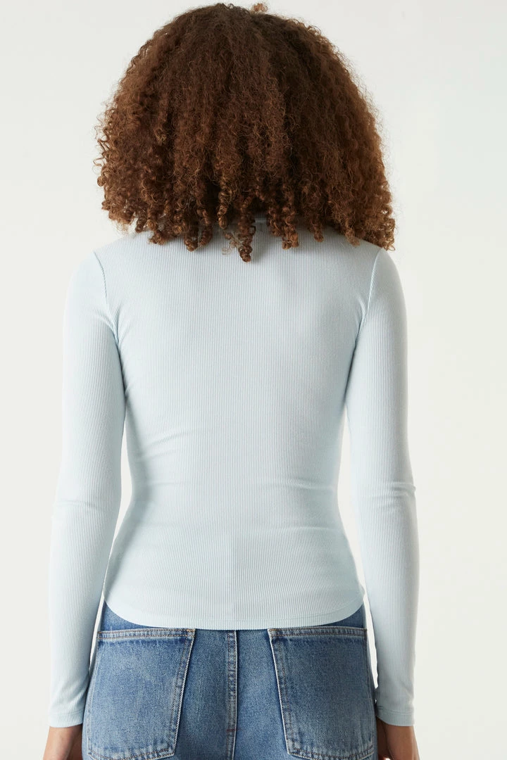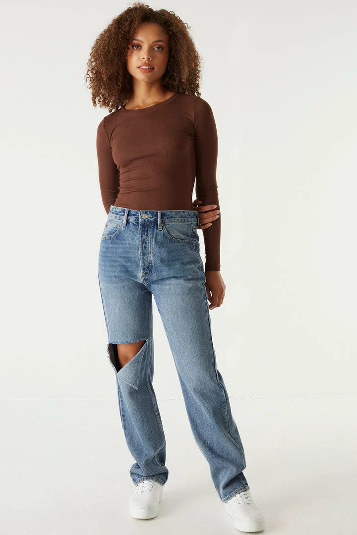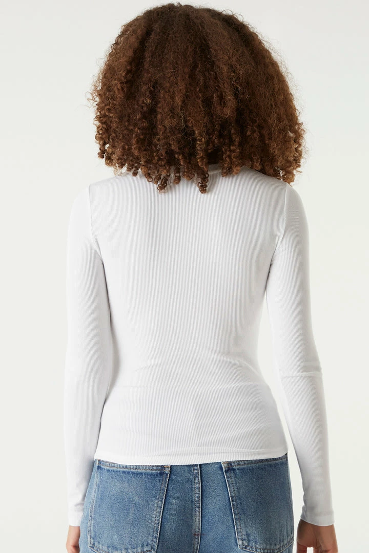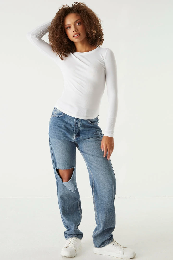 A core piece you can dress up or down! This top features a crew neckline, ribbed knit material and long sleeves. Size Runs Small.