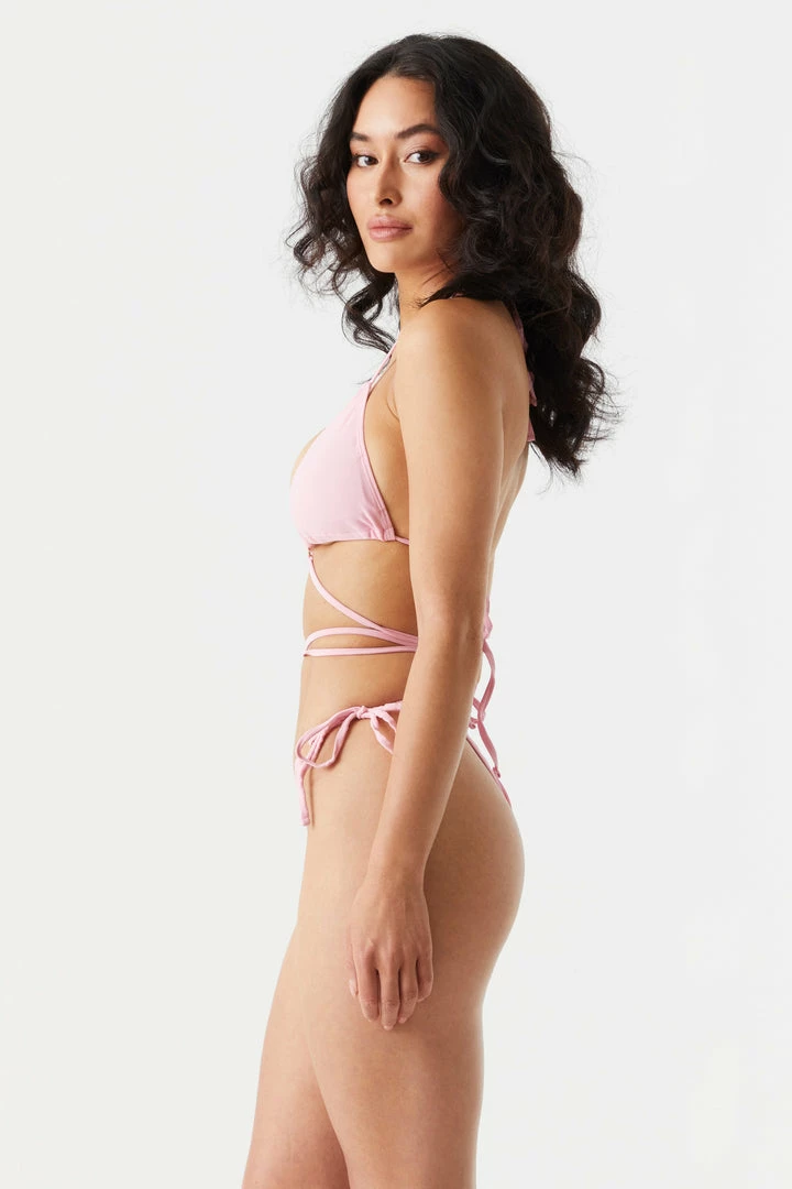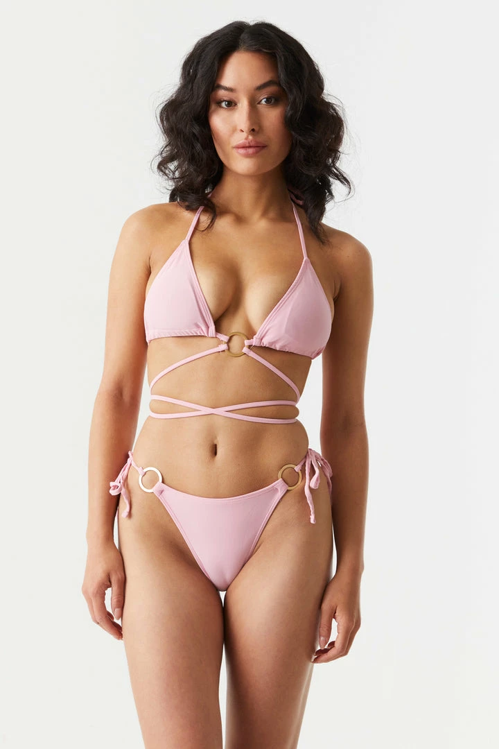 Tanning oil? Check! Beach towel? Check! Now the only thing missing from your perfect day in the sun is this bangin’ bikini top. This bikini top features self-tie halter neck, self-tie back and O-ring detailing. Set me up with the Sommer Ray Self-Tie O-Ring Brazil Bikini Bottom.