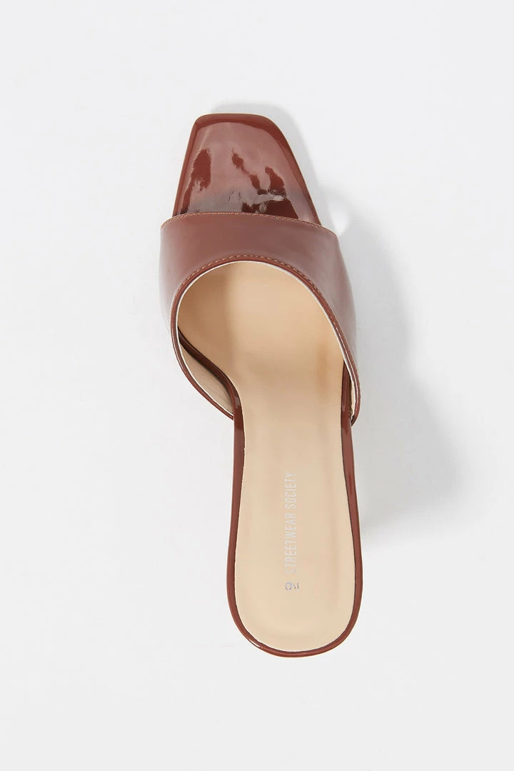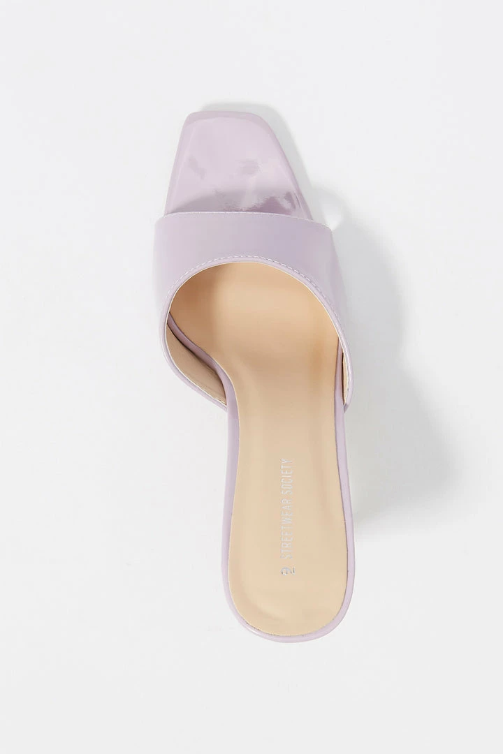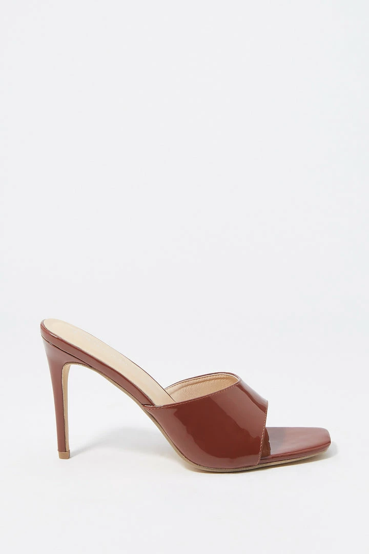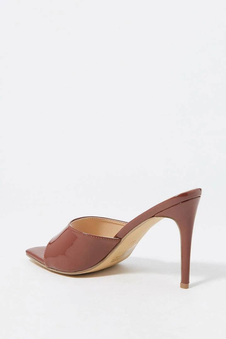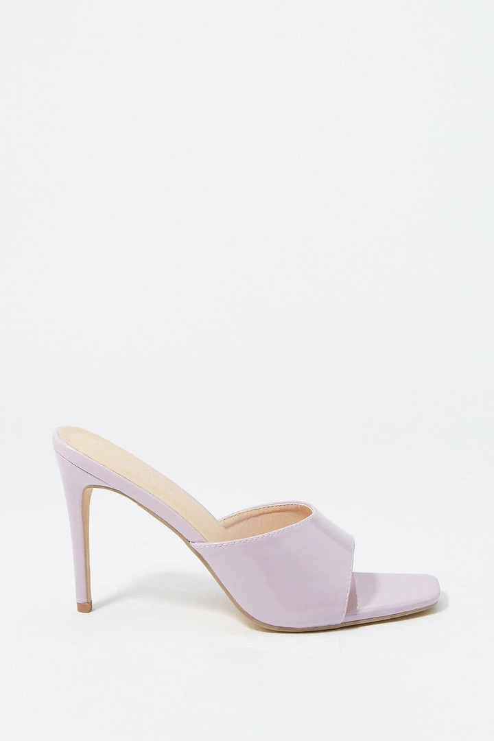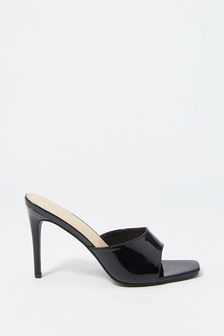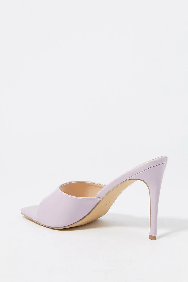 Step aside winter boots, we are breaking out the toes for this staple spring heel. This shoe features slide-on fit, wide curved band and stiletto mule high heel.