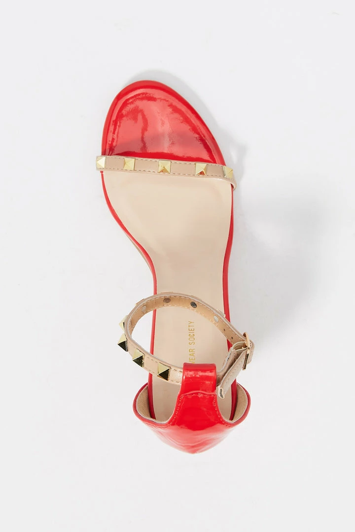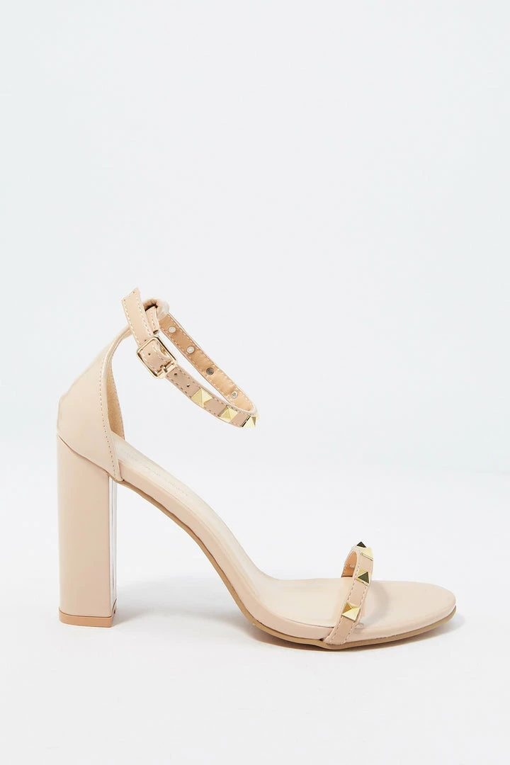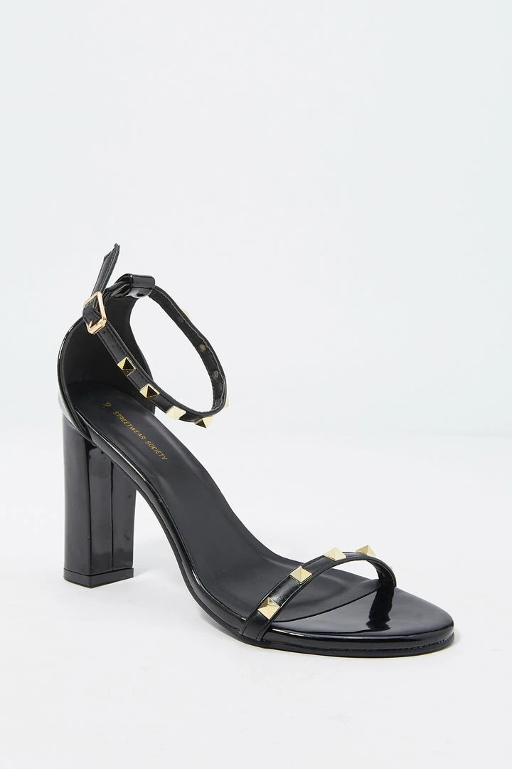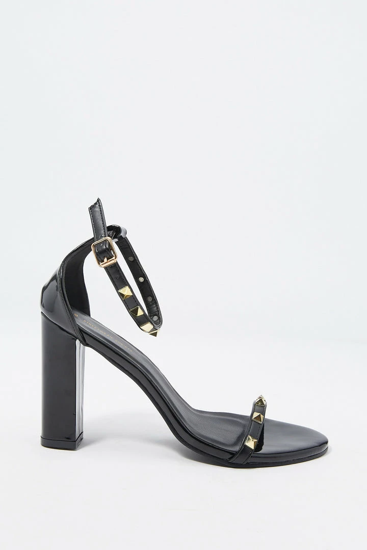 Feel like a true stud in stand-out heels for every occasion. This high heel features studded thin toe band, studded thin ankle band with adjustable strap and high heel.