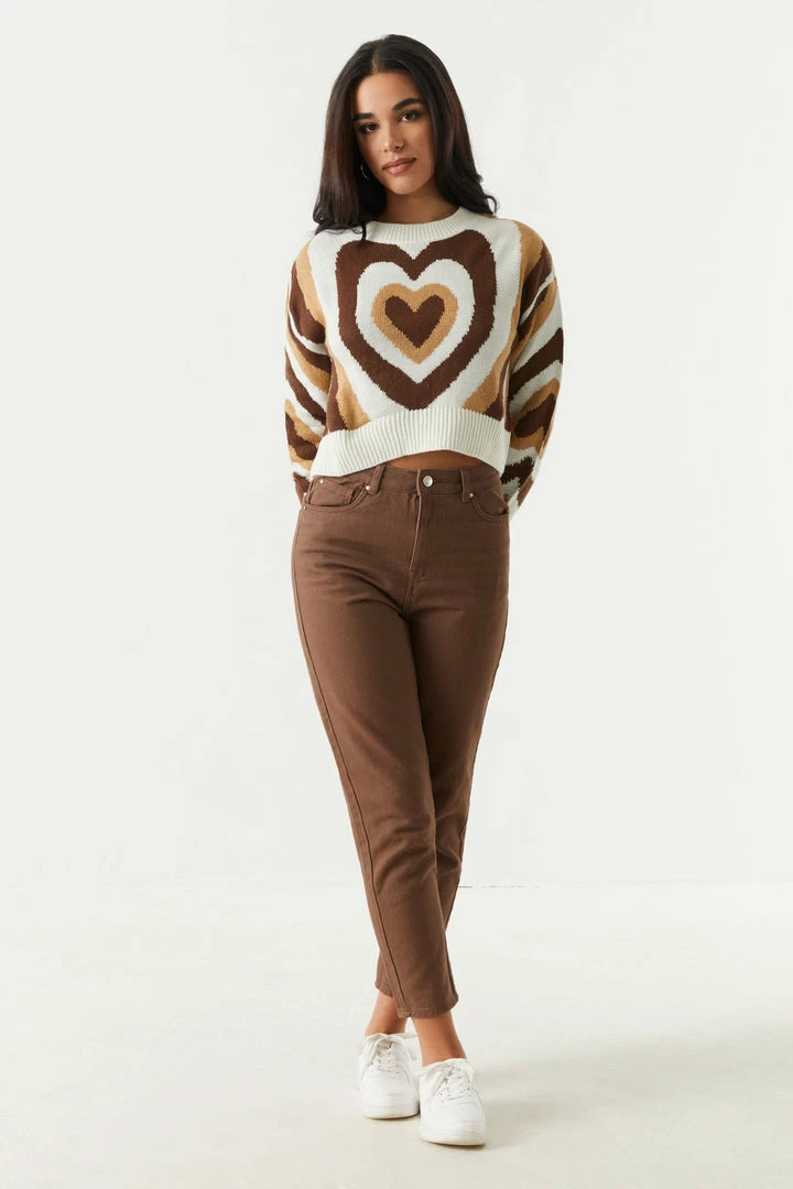 Wear your heart on your chest! How can romance be dead when this top is so charming. This sweater features long sleeves, crew neckline, cropped fit and heart stripe print. Size Runs Small.