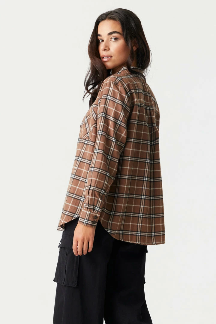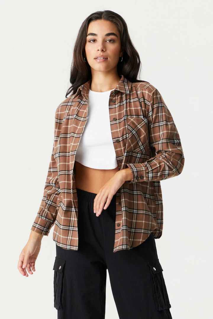 This lil lumber jack doesn’t need an axe! When the fit is this fierce everything just falls for you. This top features tan plaid print, long sleeves, button-up front, single pocket and flannel material. Size Runs Small.