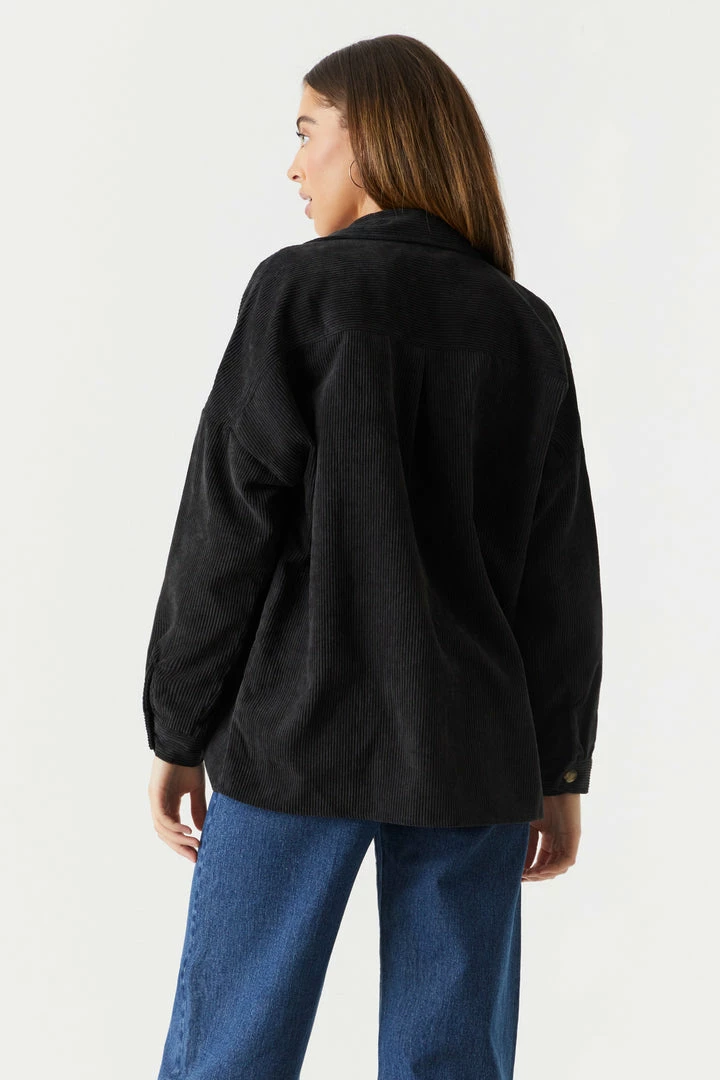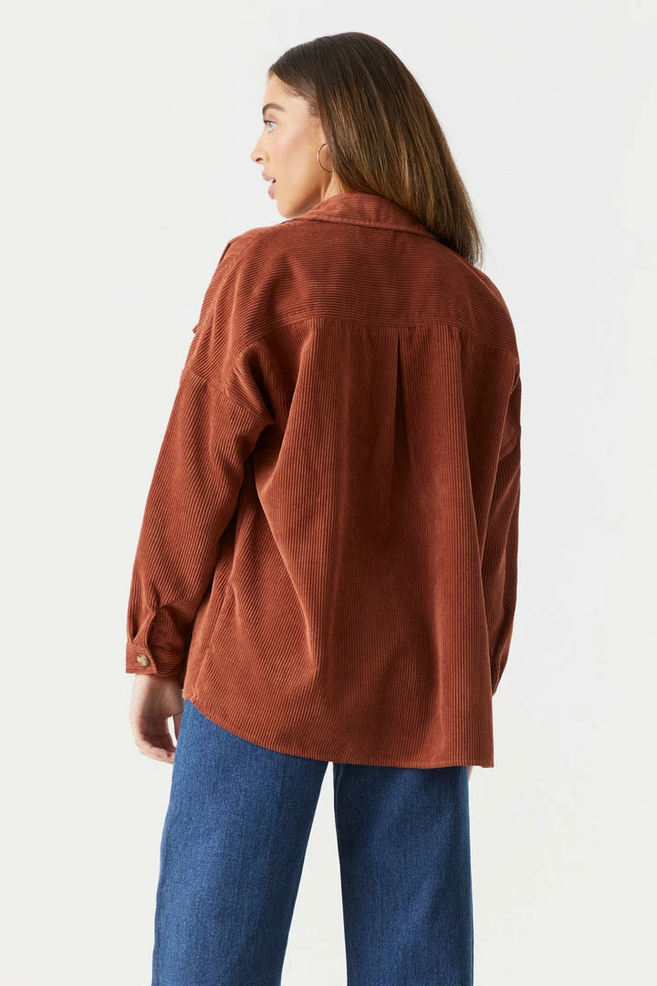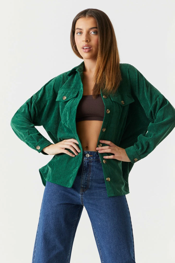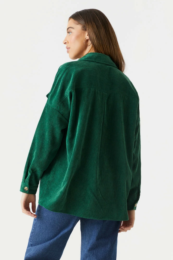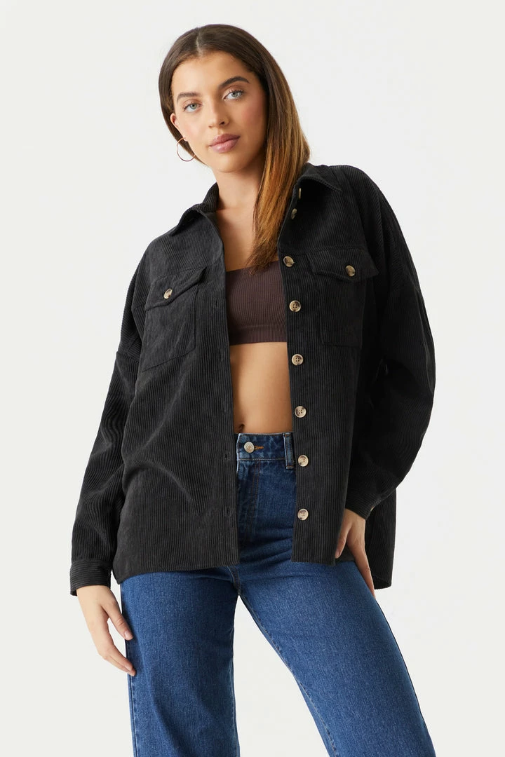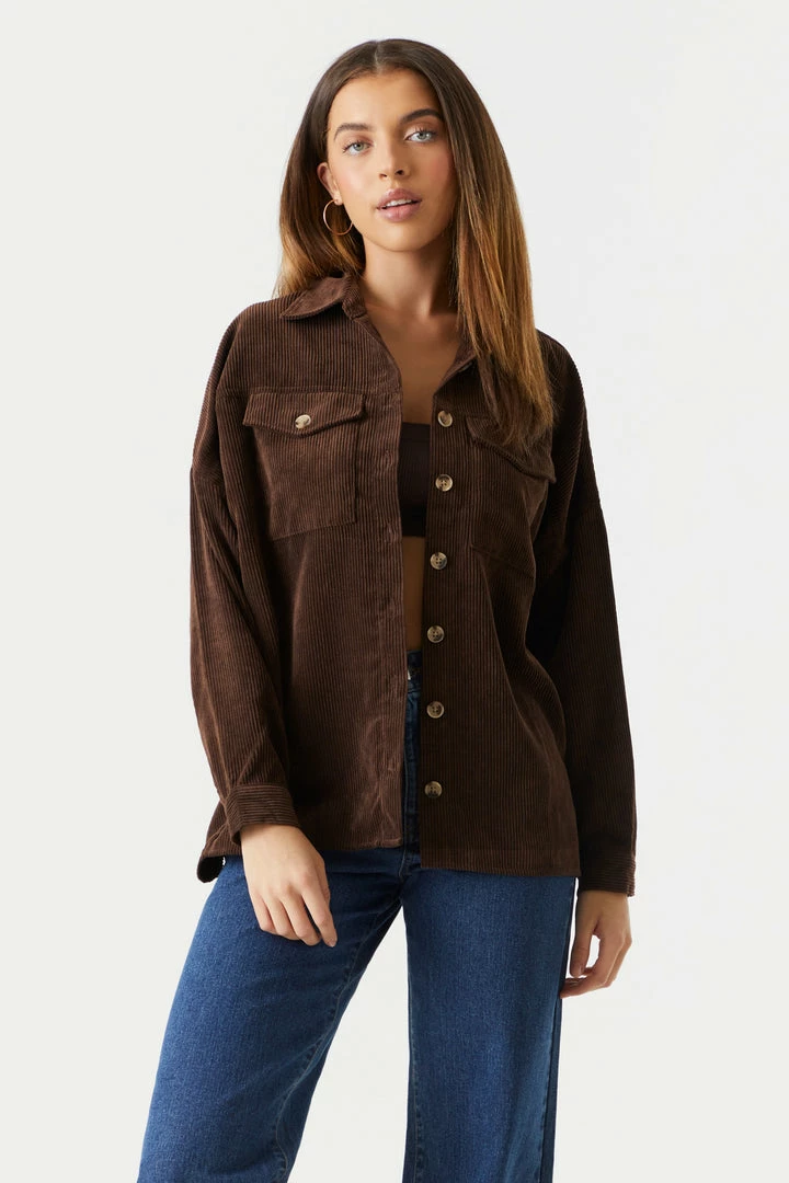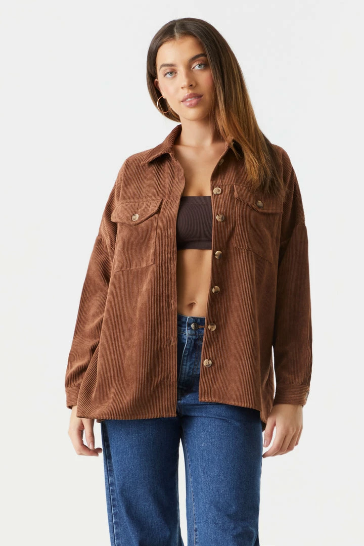 We can’t get over this oversized fit! Lush layering pieces makes for ultimate comfort. This top features button-up front, long sleeves, two button-up pockets, corduroy material, collared neck and single button cuffs. Size Runs Small.