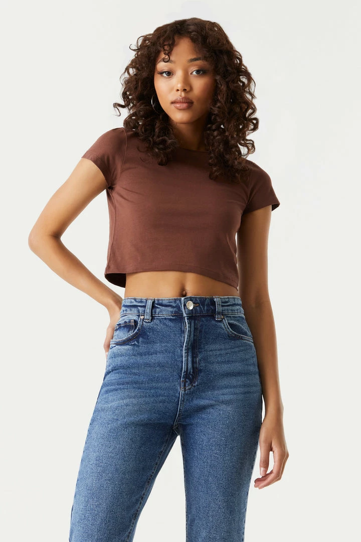 Feel your flawless self everyday of the week in this casual cropped tee! This t-shirt features crew neckline, short sleeves and cropped fit.