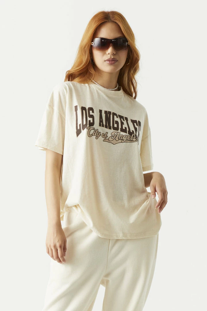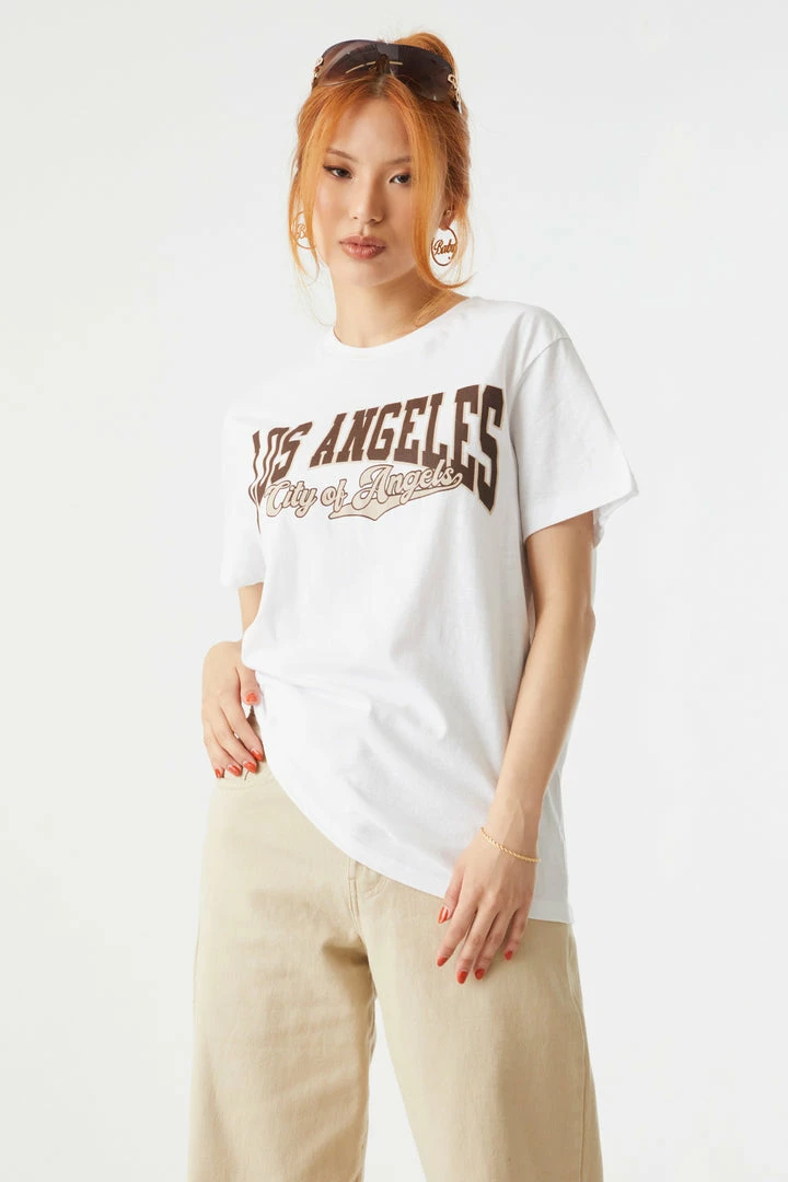 Blessed and well dressed! Everything you need for a stylish trip to the City of Angels it in this tee. This t-shirt features crew neckline, short sleeves, oversized fit and City of Angels Los Angeles front graphic. Size Runs Small.