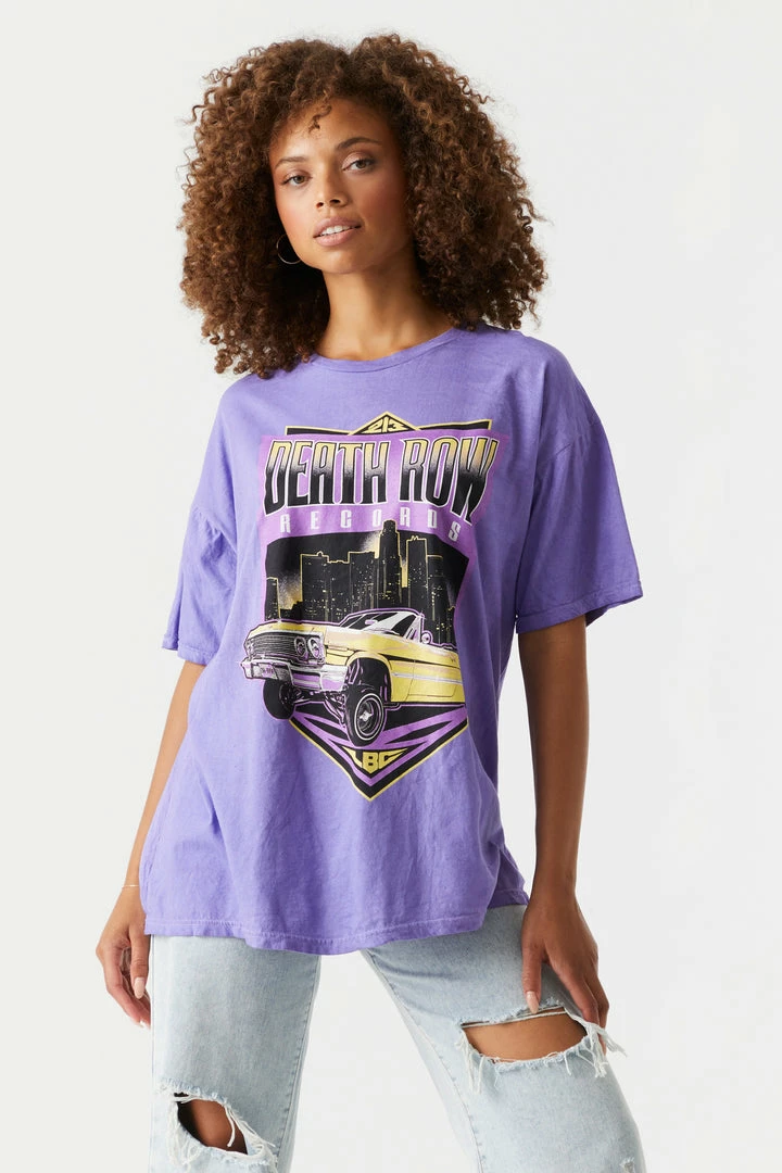 Hit List Update! Climb to the top of the charts with this rockin record graphic tee. This t-shirt features crew neckline, short sleeves and death row records car graphic.