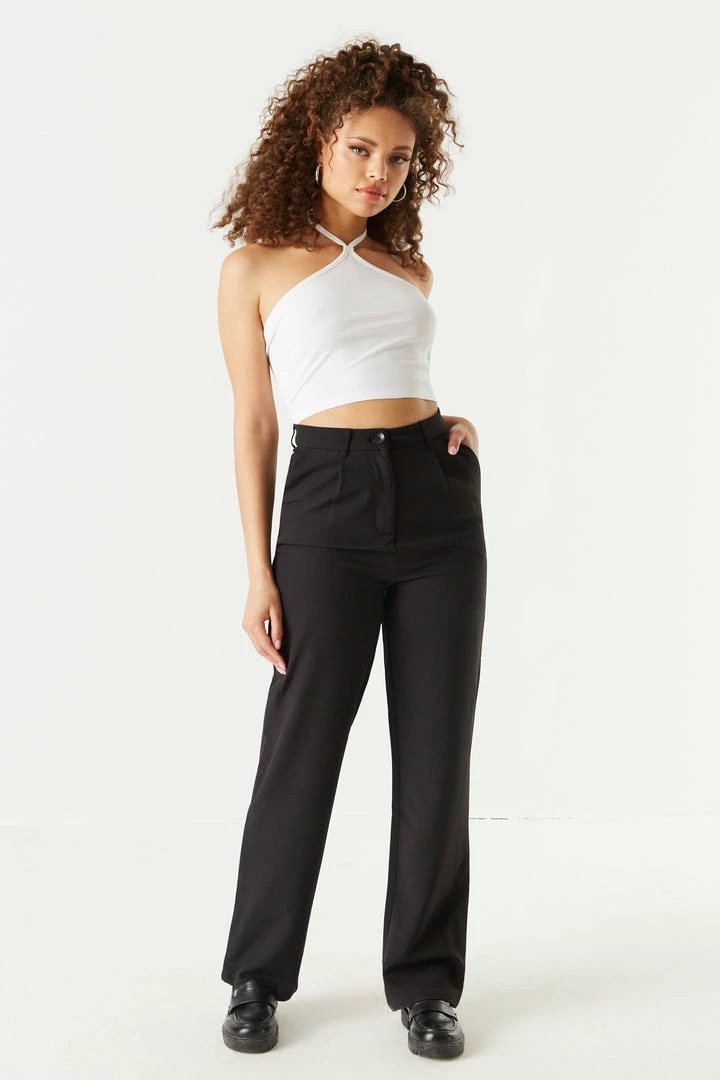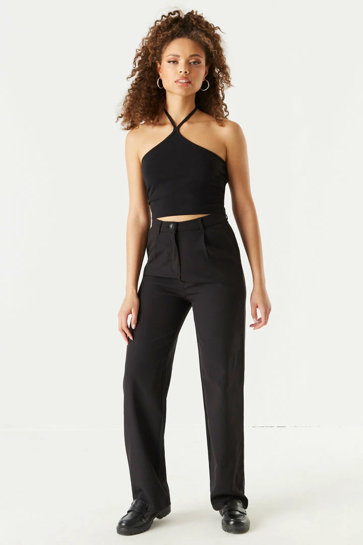 It’s your belly buttons’ break out moment! Bare all in this tiny top or pair it with your favourite high-rise pant for a little less draft on your drift. This top features self-tie neck, open back and cropped fit. Size Runs Small.