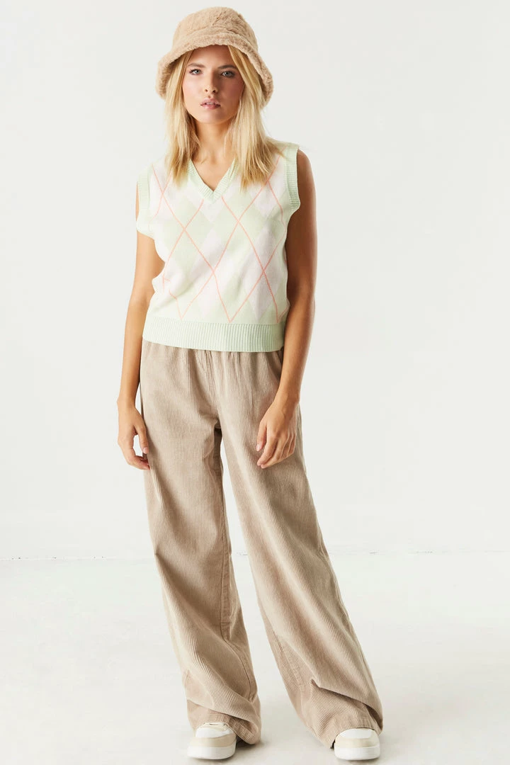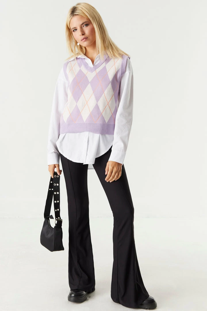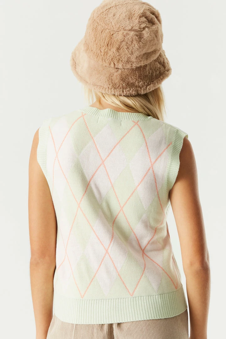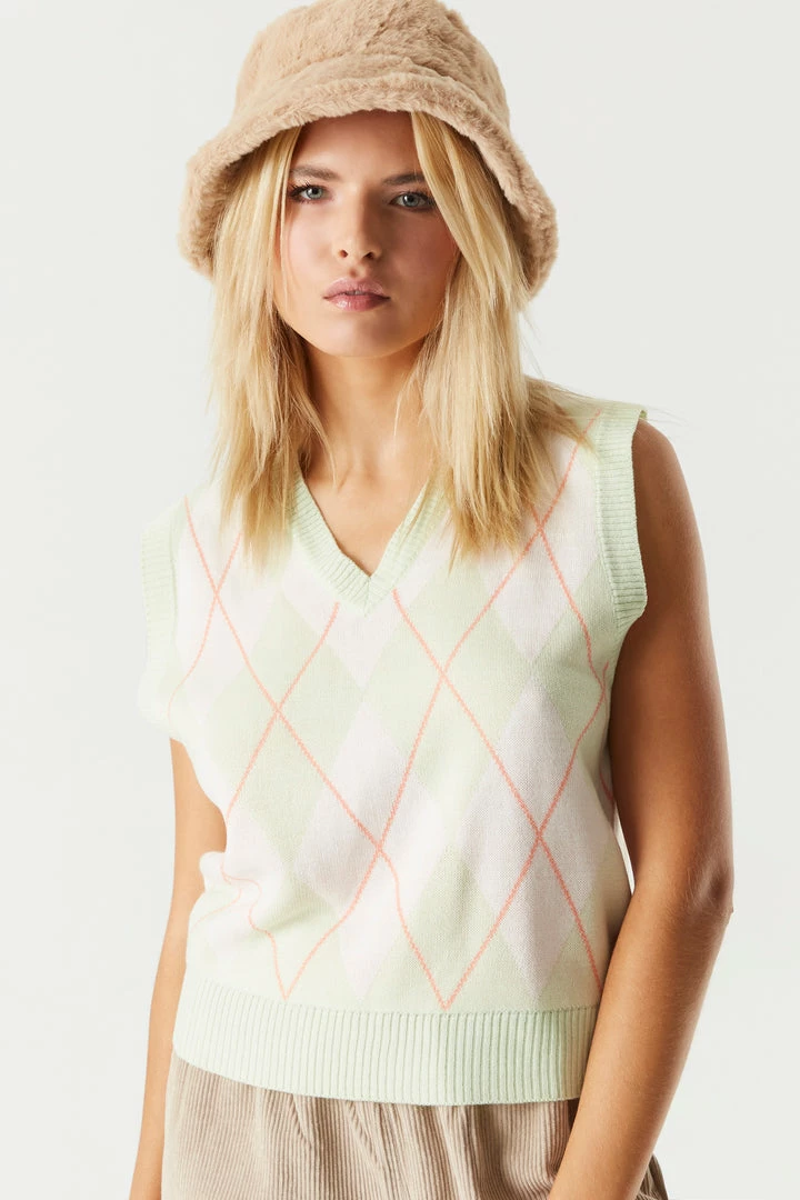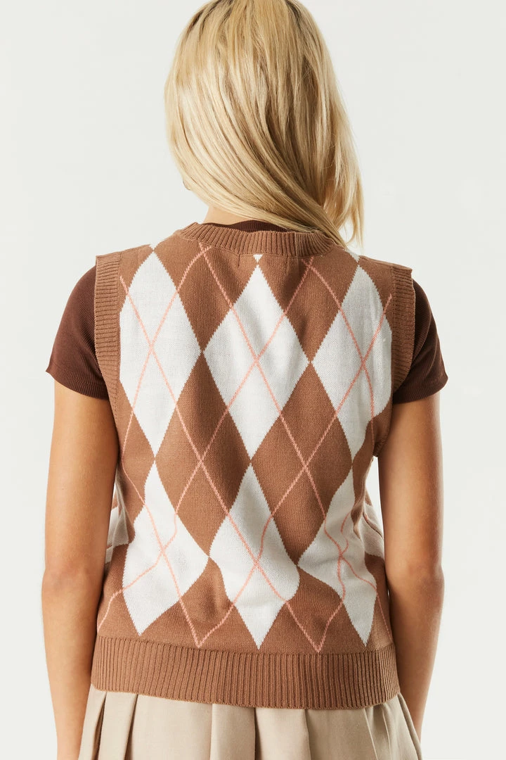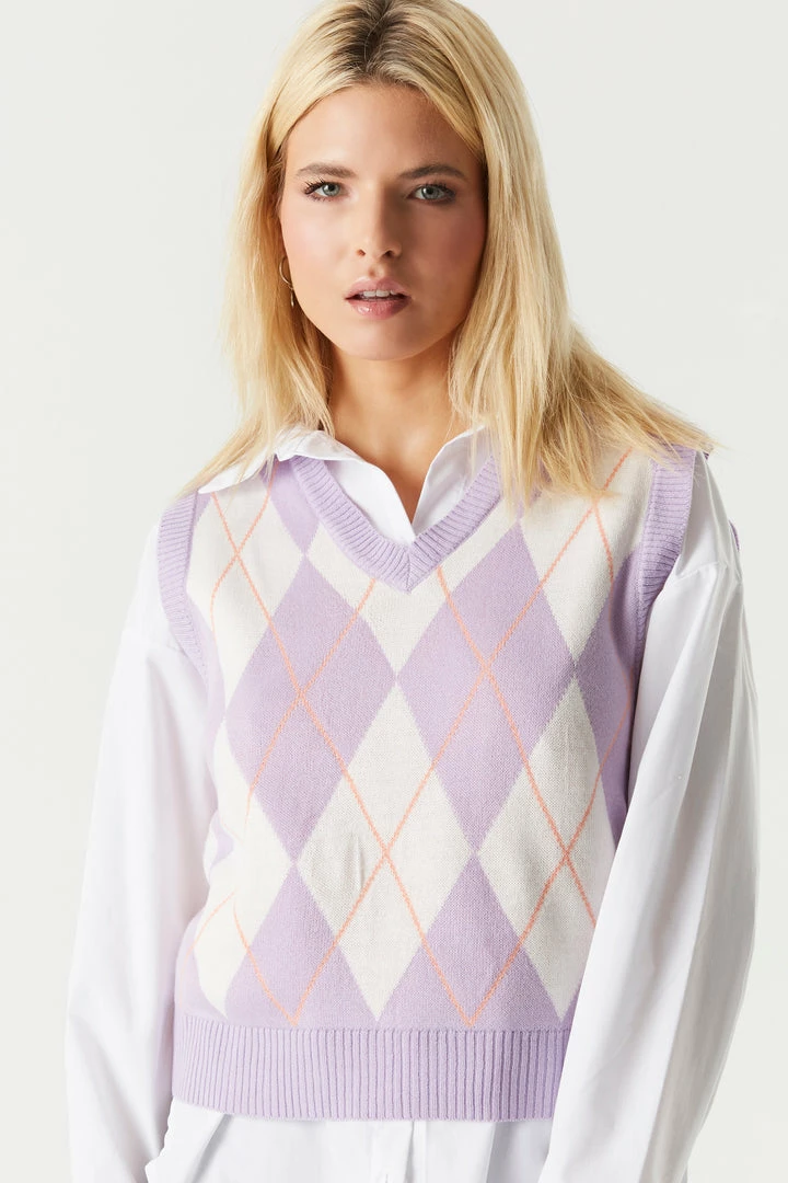 A trendy and preppy knit that’ll become your “vest” kept secret. Perfect for layering with a classic button-up top or a plain tee. This vest features a v-neckline, sleeveless arms, argyle print and knit material. Size Runs Small.