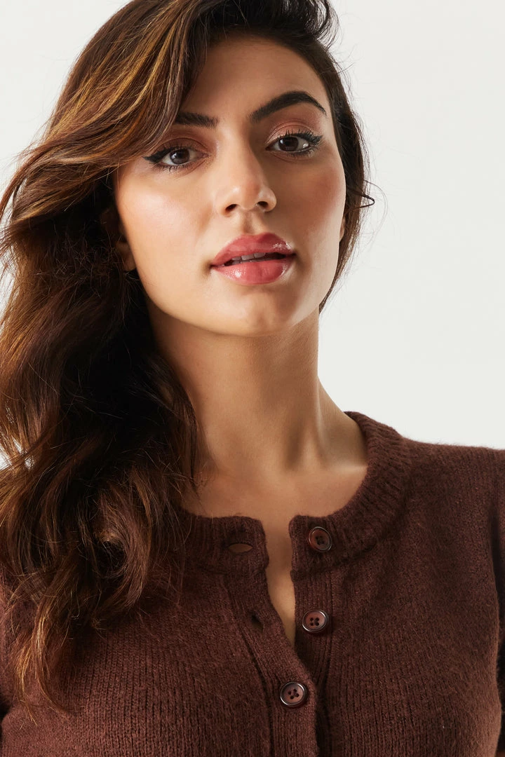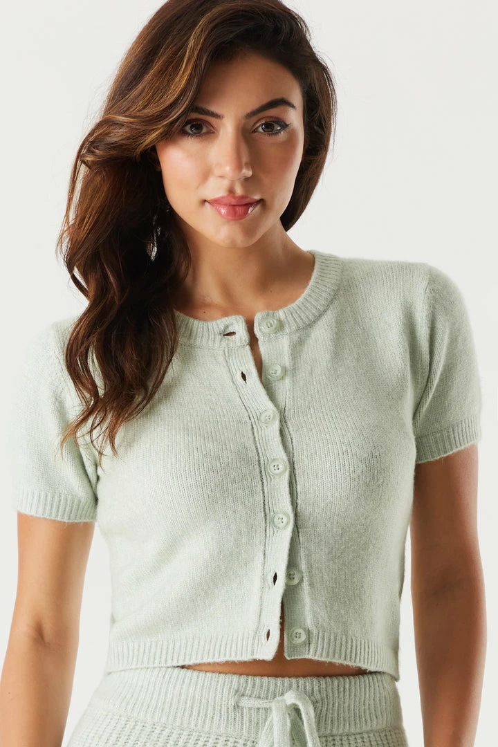 Whether you want to jazz up a simple ‘fit or you don’t know what to wear during in-between seasons, turn to a trendy cardi. This cardigan features a front button-up closure, ribbed cuffs and hem and short sleeves. Size Runs Small.