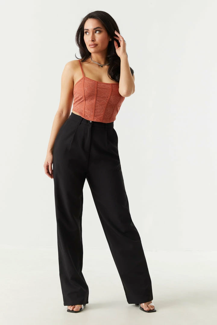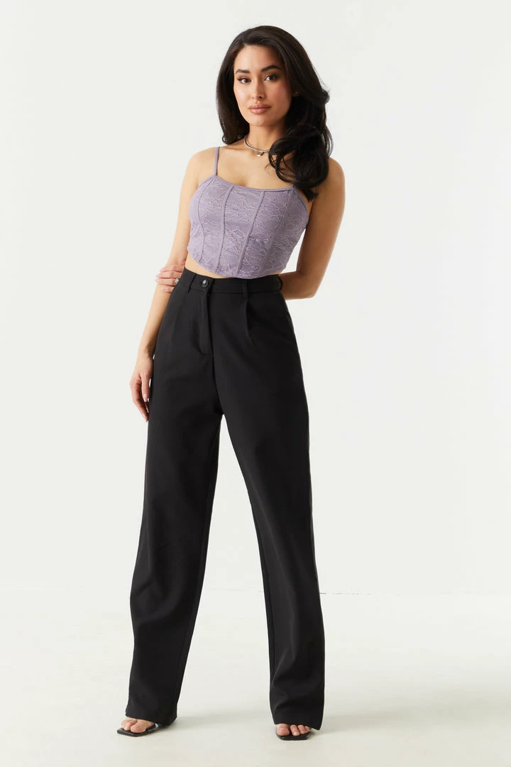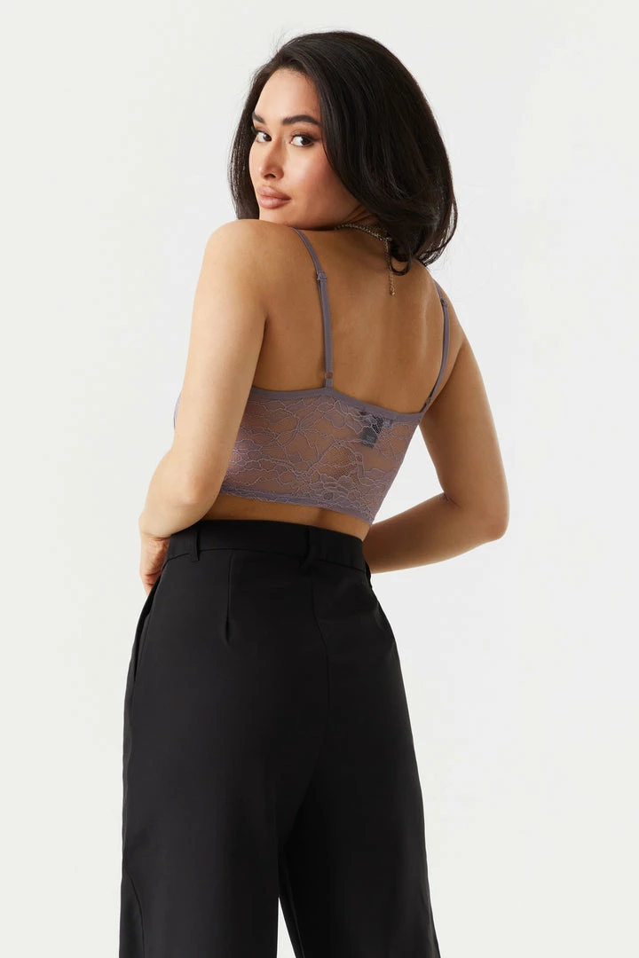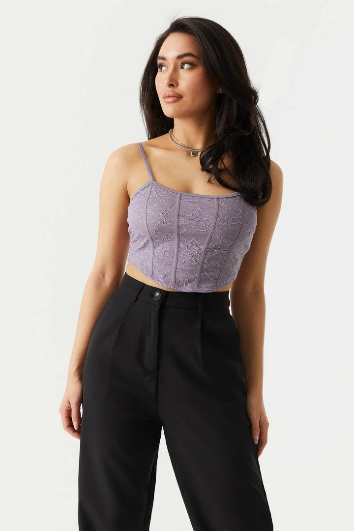 Unleash your inner princess! You don’t need a fairy god mother to make your lace dreams come true! This cami features corset boning, double adjustable straps, cropped fit, no-show lace front and lace back. Size runs small.